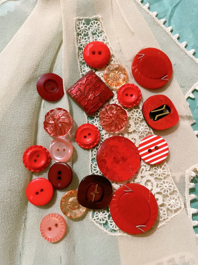 こちらは、赤を基調としたヴィンテージ風ボタンの20個セットです。情熱的で鮮やかな赤から、落ち着きのある深紅、そしてピンクがかった優しい赤まで、幅広い色味が揃っています。それぞれがユニークなデザインを持ち、温かみのある雰囲気が魅力的です。 透明感のあるタイプや光沢のあるもの、ゴールドの縁取りがアクセントになったデザインなど、バリエーションに富んでおり、見るだけで楽しくなるようなコレクションです。どのボタンも存在感がありながらも調和を保つ絶妙なバランスで、手作り作品をより特別なものに仕上げてくれるでしょう。 このセットは、洋服やバッグのリメイク、アクセサリー制作、ハンドメイド雑貨の装飾など、さまざまな用途にお使いいただけます。赤は情熱や愛、温もりを象徴する色でもあり、作品に生き生きとしたエネルギーを与えてくれます。 それぞれのボタンがヴィンテージの風合いを持ちながらも実用的で、使いやすさを兼ね備えています。赤いボタンは、手作りアイテムに華やかさと個性をプラスするだけでなく、コレクションとして眺めるだけでも楽しめます。このセットを使って、特別な作品を生み出してみてはいかがでしょうか?