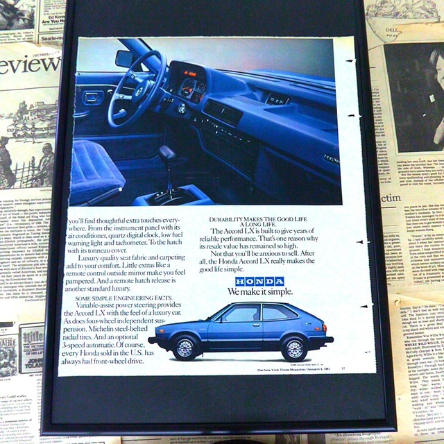 Honda 広告 NYT誌 アメリカ 1980年代 ヴィンテージ ポスター インテリア