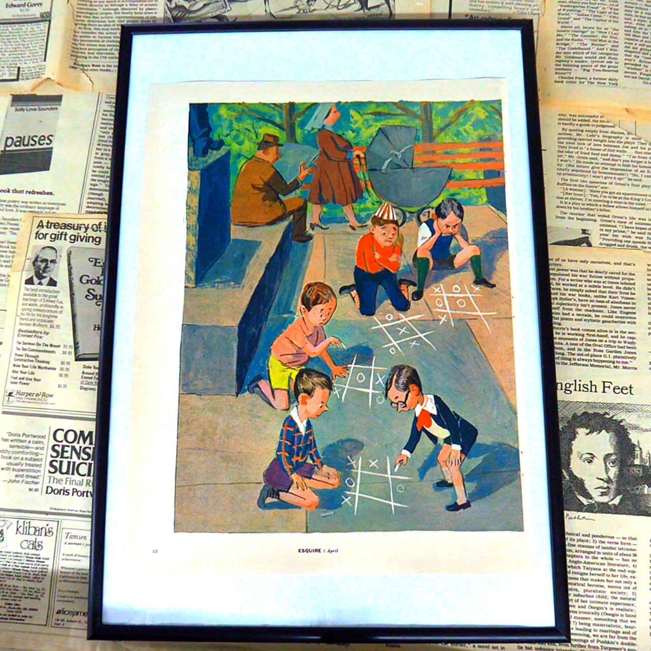 この商品の説明文では、「ESQUIRE April」と題されたイラストについてご紹介します。こちらの作品では、春の訪れを感じさせる公園の一角が舞台となっており、子供たちと大人たちの温かな日常が描かれています。芝生の上にチョークで描かれた三目並べのゲームに夢中になる子供たちの姿や、彼らを見守りながら談笑する大人たちの様子からは、家族や地域社会の絆の大切さが感じられます。また、このイラストはただの風景描写に留まらず、遊びと日常生活の中に埋め込まれた小さな幸せや、世代を超えたコミュニケーションの価値を浮き彫りにしています。親しみやすく、どこか懐かしいこの作品は、見る人々に心温まる時間を提供するでしょう。
