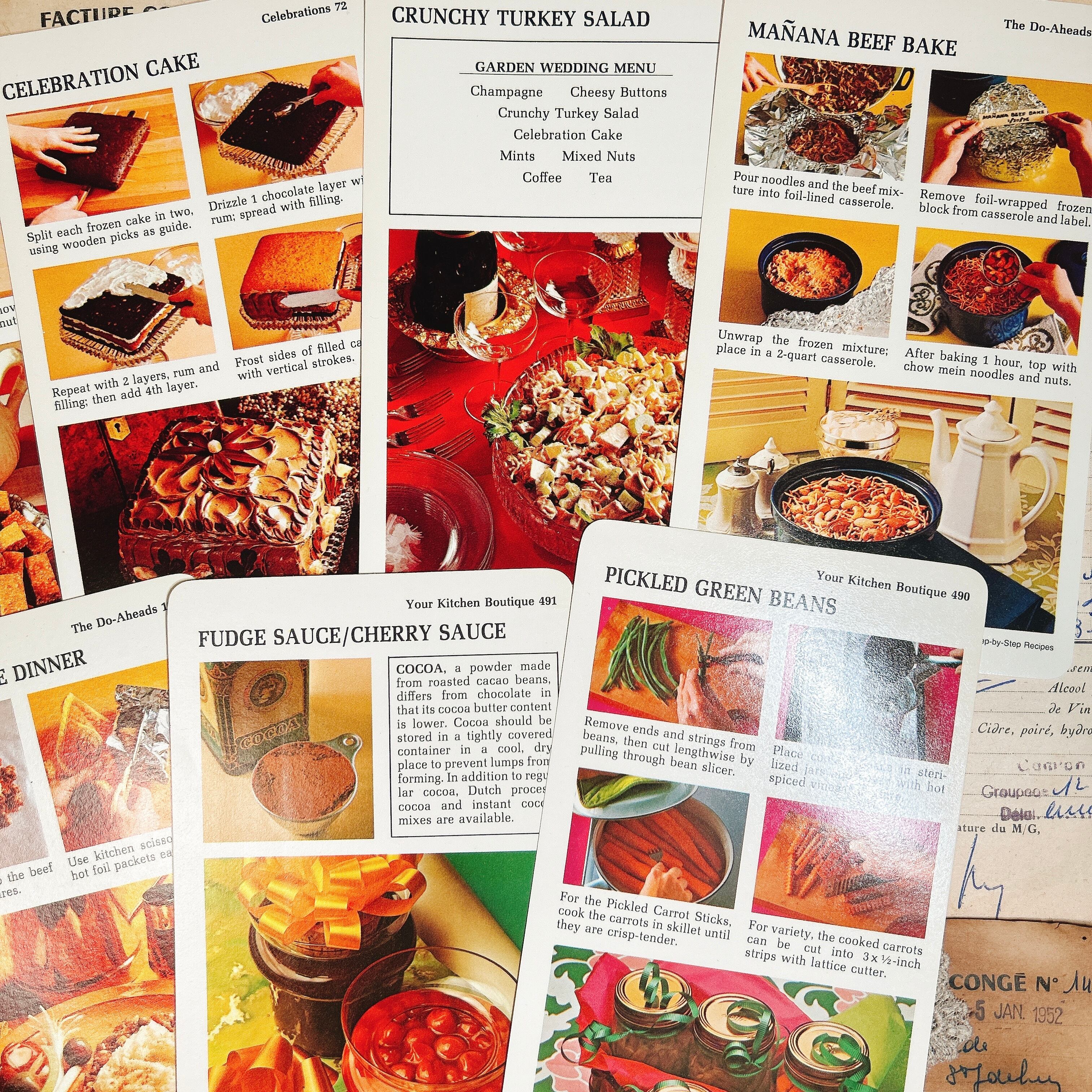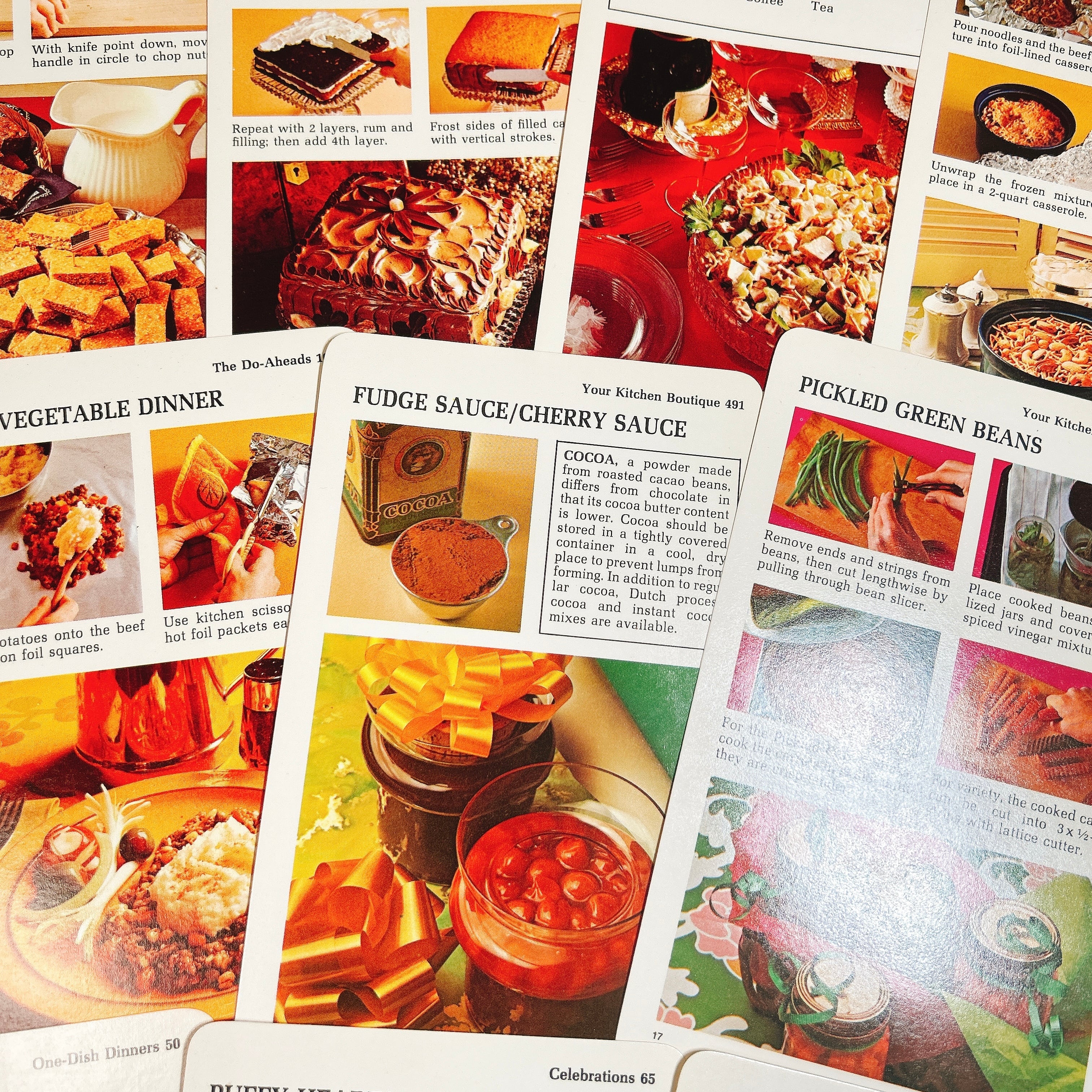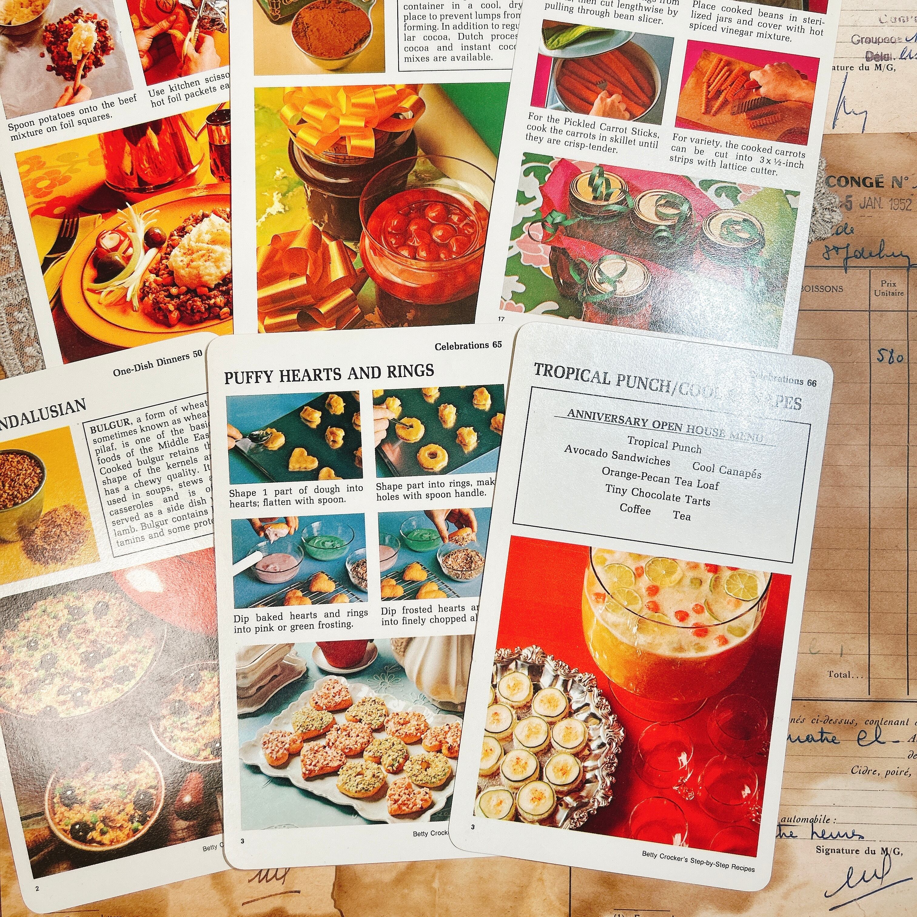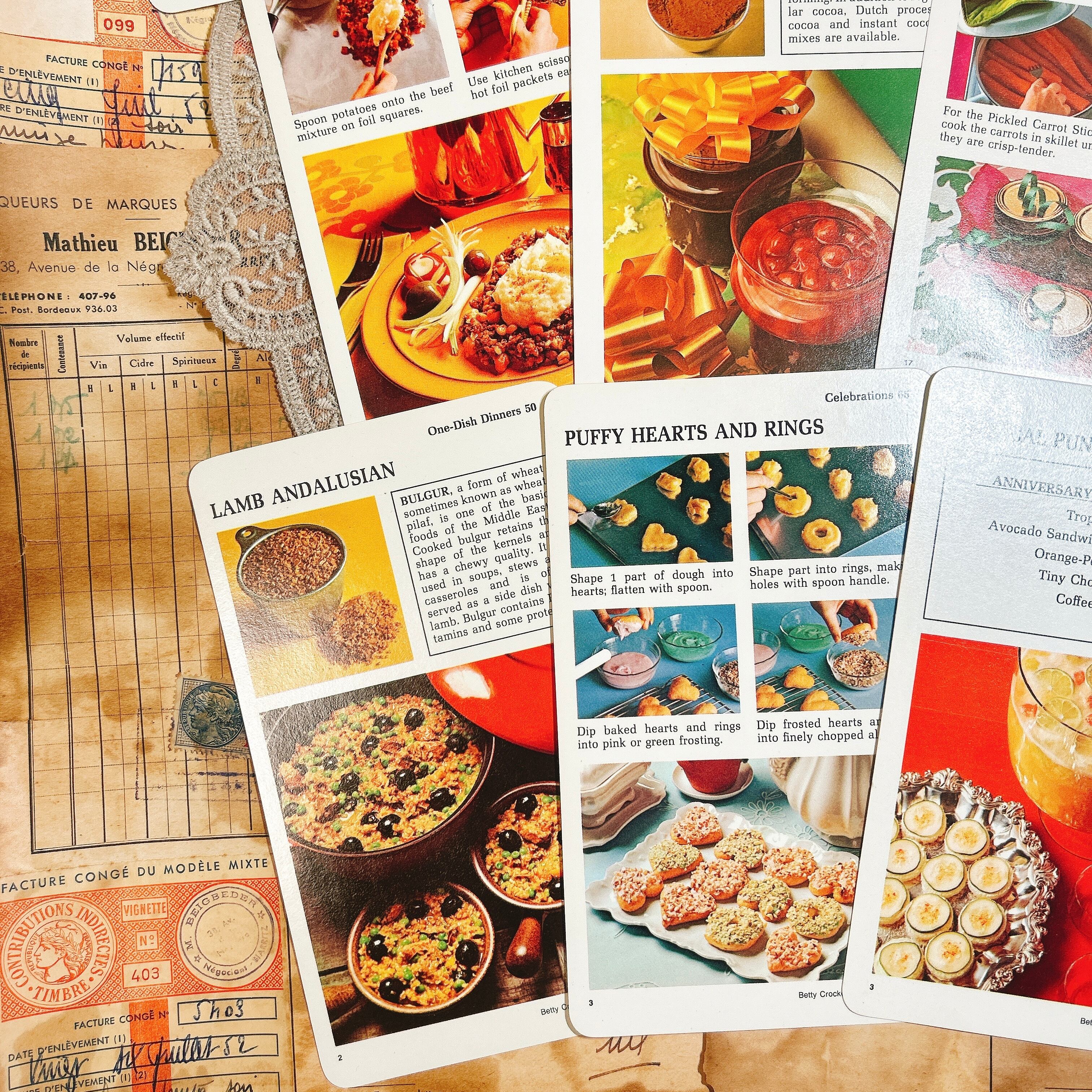 紙質はしっかりとした厚みがあり、レシピカードとしてはもちろん、コラージュやジャンクジャーナルの素材、スクラップブッキングのアクセントとしても活用できます。ヴィンテージキッチンのインテリアとして飾ったり、レトロなレシピを実際に作って楽しむのもおすすめです。
