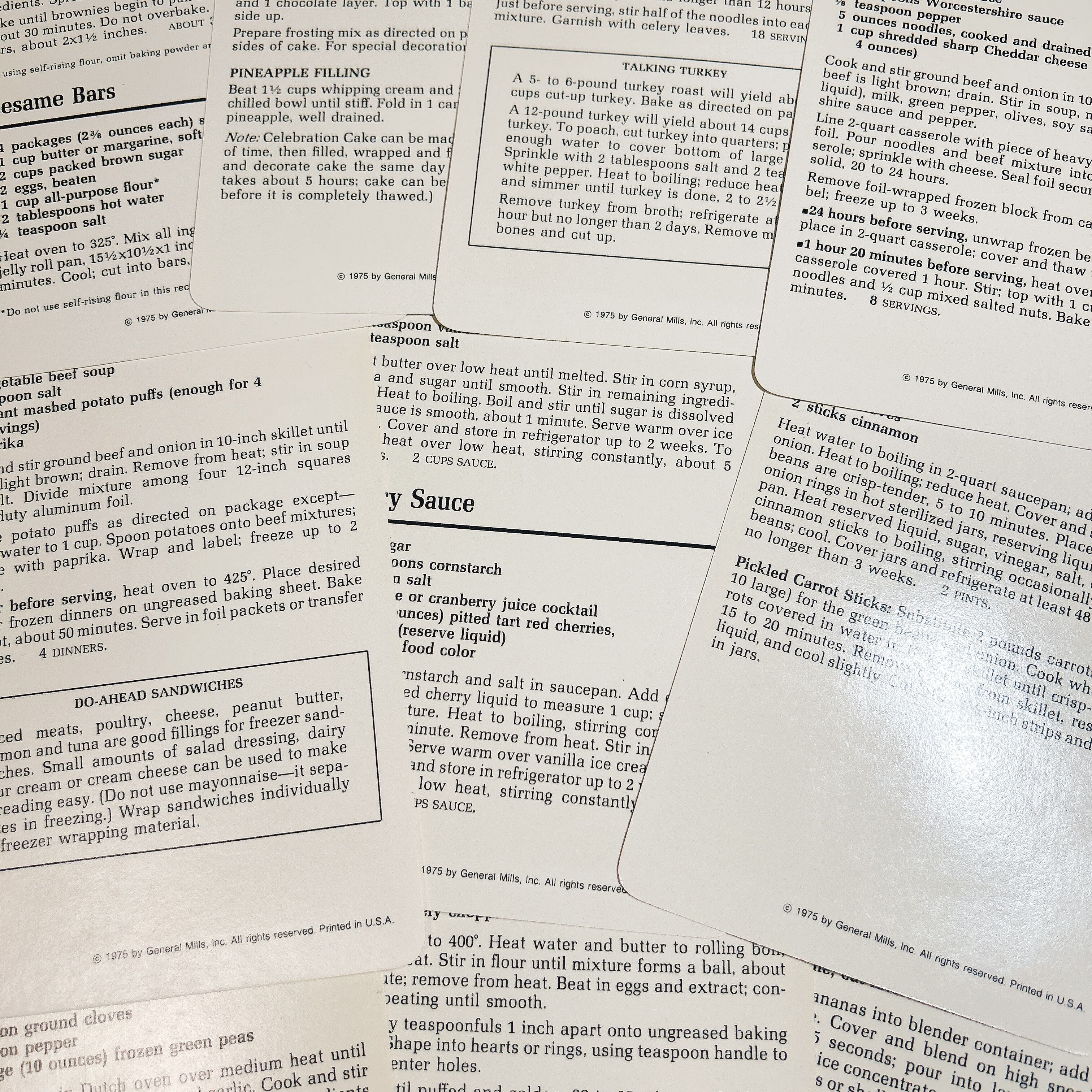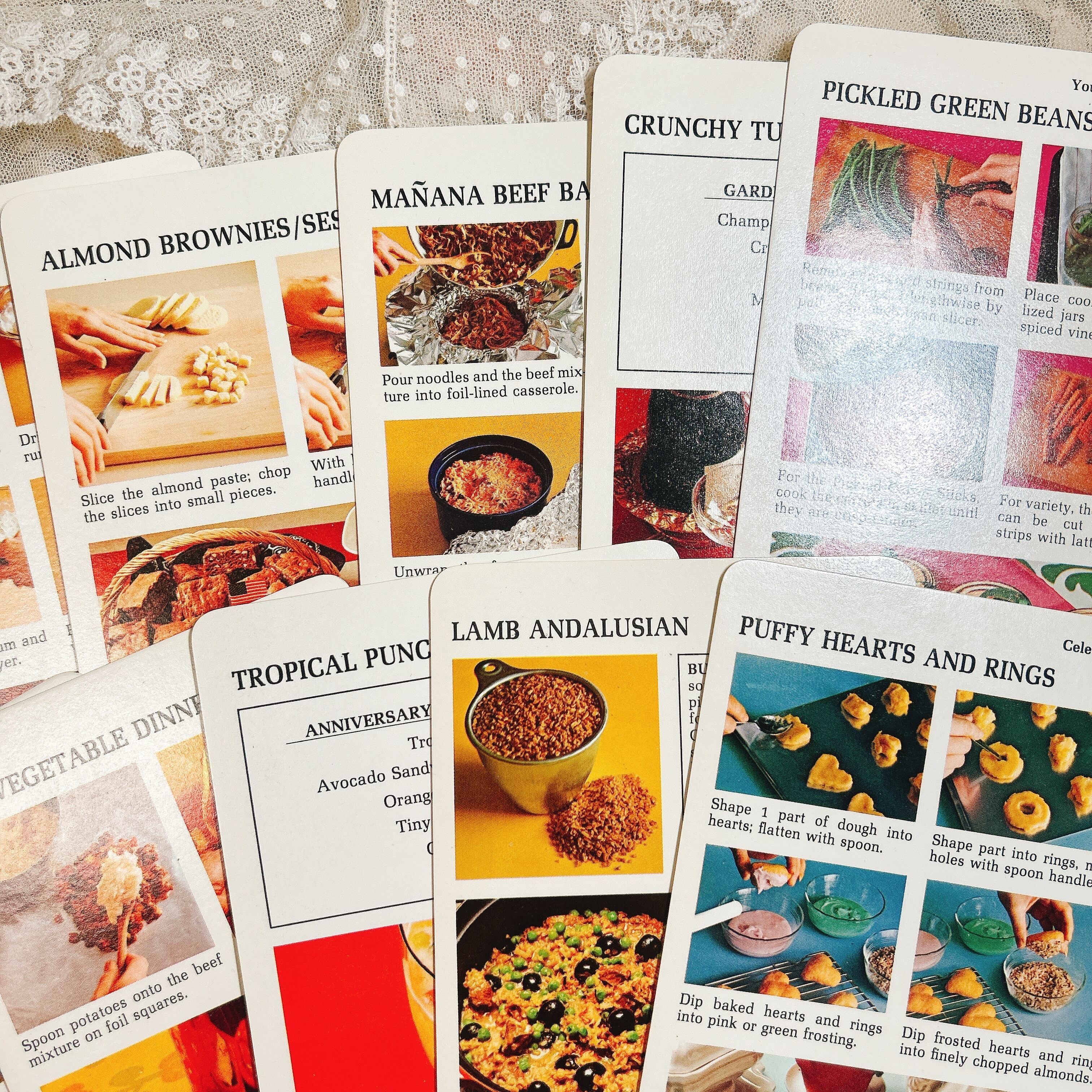 アメリカのヴィンテージ感溢れるレシピカード10枚セットです。当時のアメリカの家庭で人気だった料理のレシピが掲載されています。