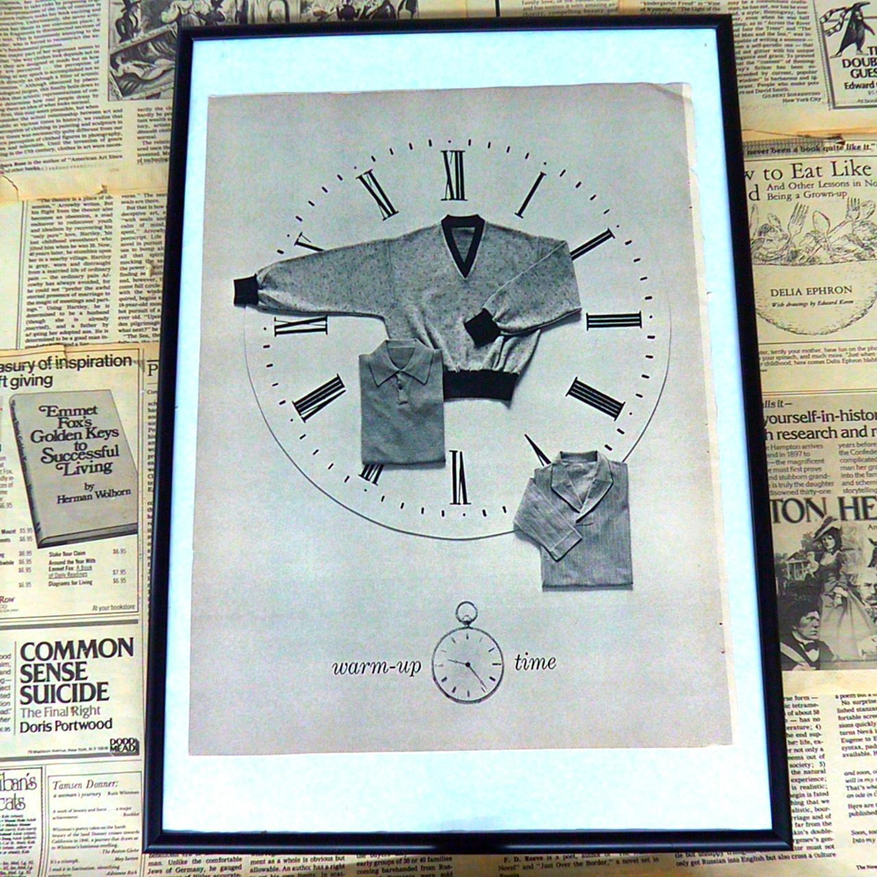 こちらは1970年代の雑誌『ESQUIRE』の1ページから切り抜かれたイラストです。オフィスでの一幕がユーモラスに描かれており、威厳ある年配の男性上司がデスクに座っているところへ、若い女性がやや挑戦的な態度で立っています。キャプションには「言葉に気をつけて—私はあなたの役員会メンバーじゃないのよ!」とあり、上司と部下の関係性や女性の自立した姿勢を皮肉と機知で表現しています。背景には都会的な風景やクラシカルなオフィスインテリアが描かれ、時代性を感じさせる色遣いと筆致が魅力的です。今では見られないレトロなオフィスカルチャーの雰囲気や、当時の社会の風刺が感じられる逸品で、インテリアやコレクションにも最適なアート作品です。