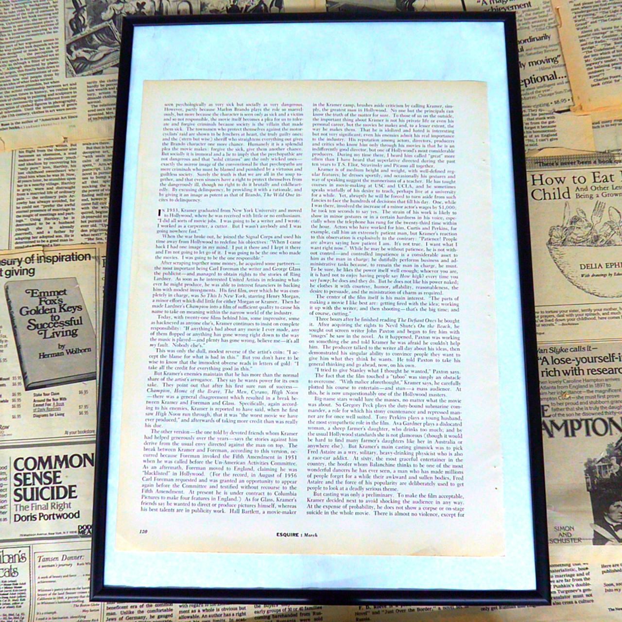 本品は、著名な米国雑誌『ESQUIRE』の3月号からの1ページで、ローランド・B・ウィルソン(Rowland B. Wilson)による風刺的イラストです。線画でユーモラスに描かれており、トンネルの出口ですぐに線路を掘り進めている作業員と、指示を出している上司らしき人物がコミカルに描かれています。背景には蒸気機関車と広がる風景が配置され、全体的にシンプルながらも動きと物語性があります。キャプションの「Higher!」は、上司がさらに高く掘り進めるよう無理な要求をしている様子を表現しており、現場の現実離れした指示やコミュニケーションのズレを皮肉っています。イラストは1970年代らしい洒脱なユーモアと社会風刺が効いており、インテリアとしてはもちろん、アメリカンコミックアートのコレクションにも最適な一枚です。