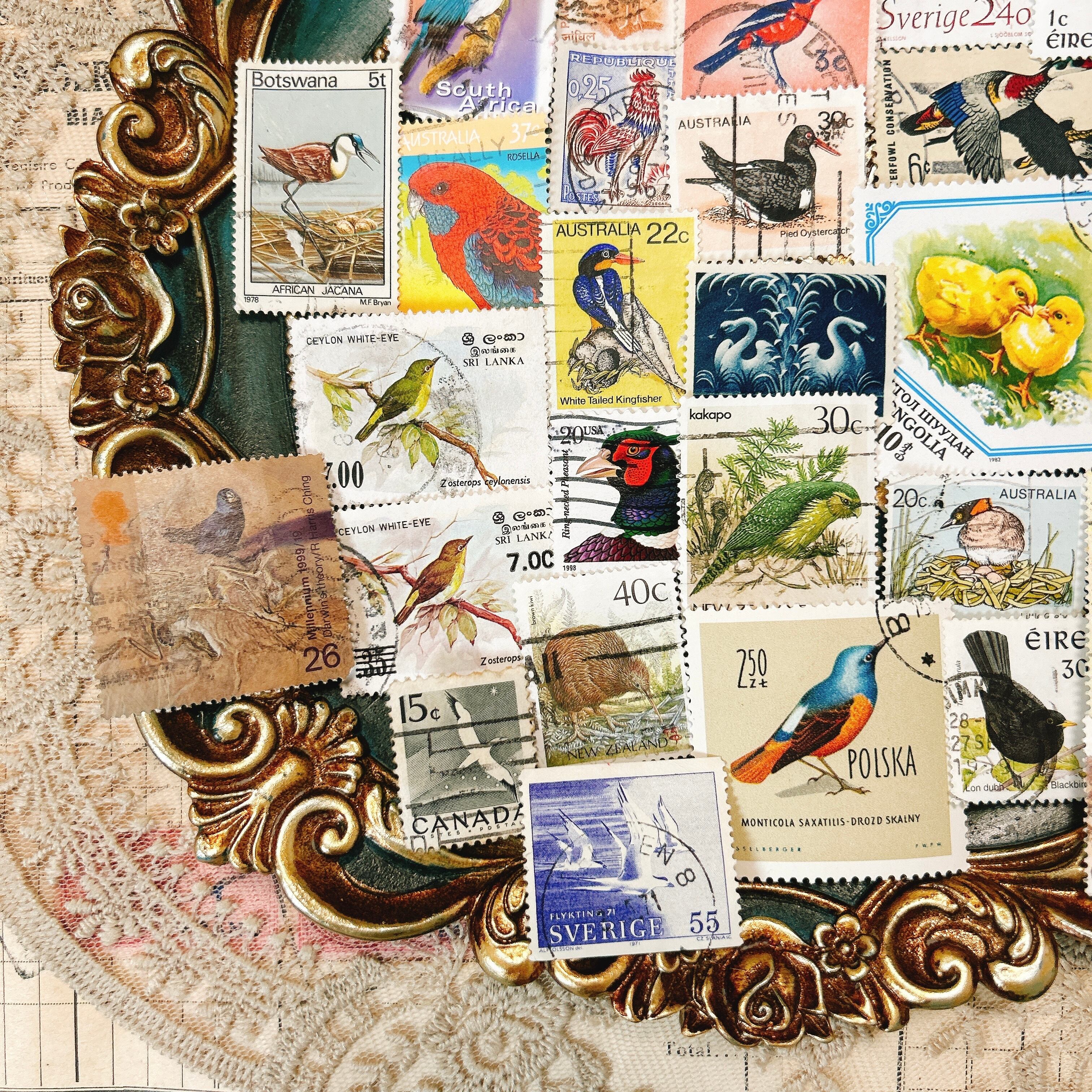 海外 ヴィンテージ 使用済み切手 鳥 30枚 ジャンクジャーナル E1756