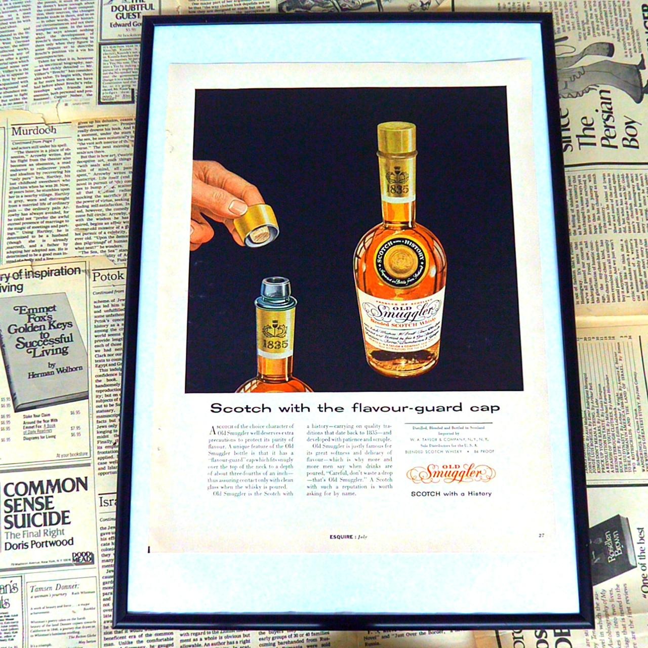 J. E. Taylor & Company, Ltd.は、スコッチウイスキーの伝統と品質を重んじる企業であり、ブランド「Old Smuggler」を代表的な商品として展開しています。19世紀よりスコットランドにおけるスコッチウイスキーの製造に携わり、その独自のブレンド技術と歴史的な背景から、世界中のウイスキー愛好家に親しまれてきました。常に高品質な原材料の選定と丁寧な蒸留を重ねることで、芳醇な香りと円やかな味わいを実現し続けています。広告にある「flavour-guard cap」など、伝統を守りつつも現代的な工夫を取り入れ、常に消費者の期待に応える商品を提供することに注力しています。