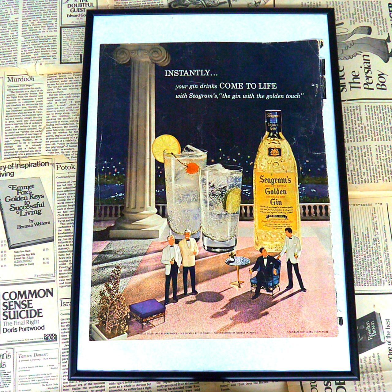 Seagram(シーグラム)は、カナダを拠点とする歴史あるアルコール飲料メーカーであり、特にウイスキーやジンなどのスピリッツで世界的に知られています。1857年に創業され、20世紀には北米最大級の蒸留酒メーカーとして急成長しました。シーグラムは革新的なブレンド技術と高い品質管理を誇り、時代を超えて多くの人々に愛されてきました。広告では『Seagram's Golden Gin』を中心に、“the gin with the golden touch”というキャッチコピーを用いて、洗練されたライフスタイルや優雅なひとときを演出しています。現在はブランドの一部が他企業に継承されていますが、Seagramの名は今もなおスピリッツ業界で高い評価を受け続けています。
