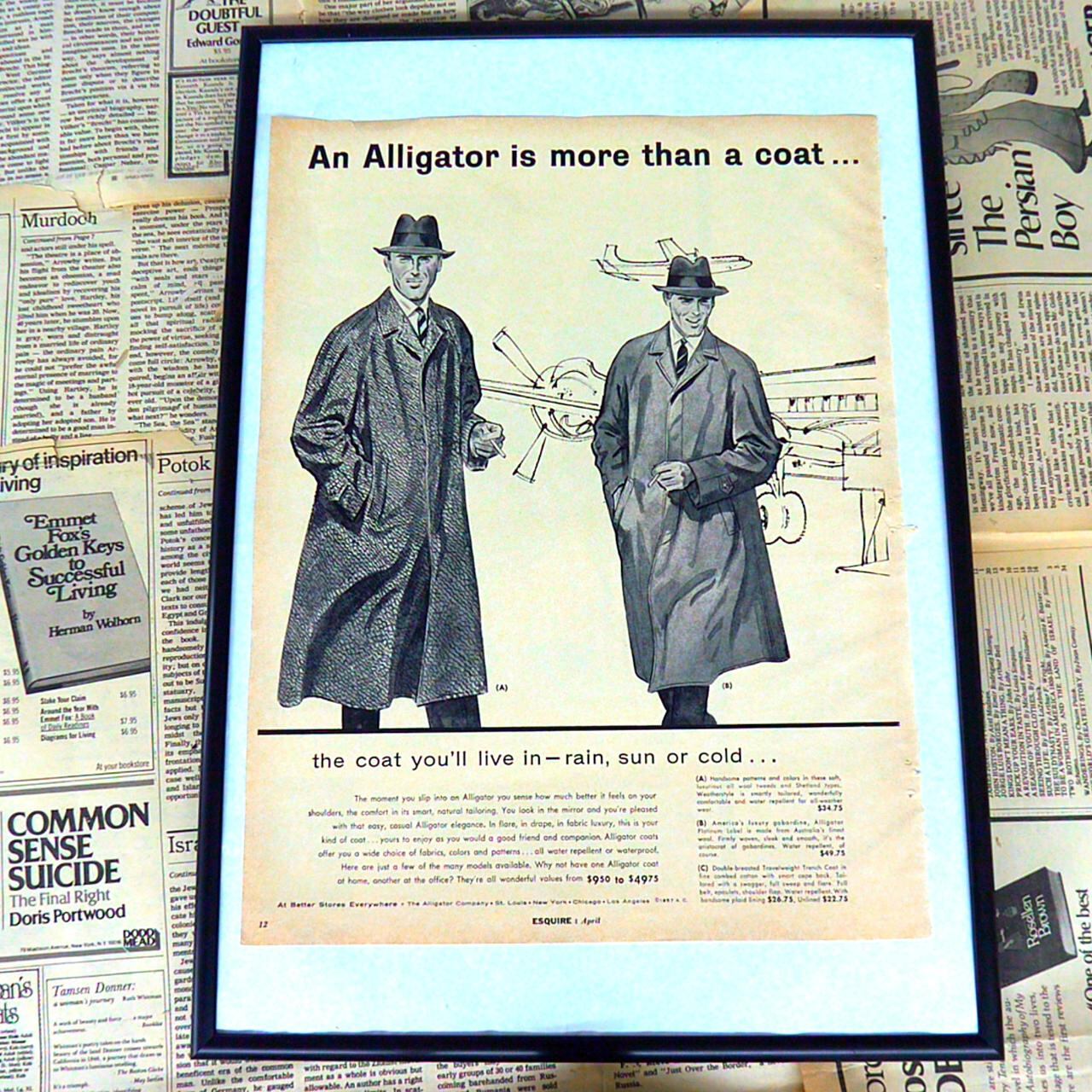 Alligatorは主にコートやレインウェアを手がけるアメリカのファッションブランドです。特にミッドセンチュリー期において、実用性と高いデザイン性を兼ね備えたトレンチコートやオーバーコートで人気を博しました。Alligator社のコートは防水性や耐久性に優れており、ビジネスからカジュアルまで幅広いスタイルに対応する点が特徴です。また、天候を問わず快適に過ごせるような素材やカッティングが追求されており、紳士のワードローブに欠かせない一着として長年にわたり愛されています。時代を超えて変わらぬエレガンスと実用性を兼ね備えたAlligatorのコートは、現代でもヴィンテージアイテムとして高い評価を受けています。