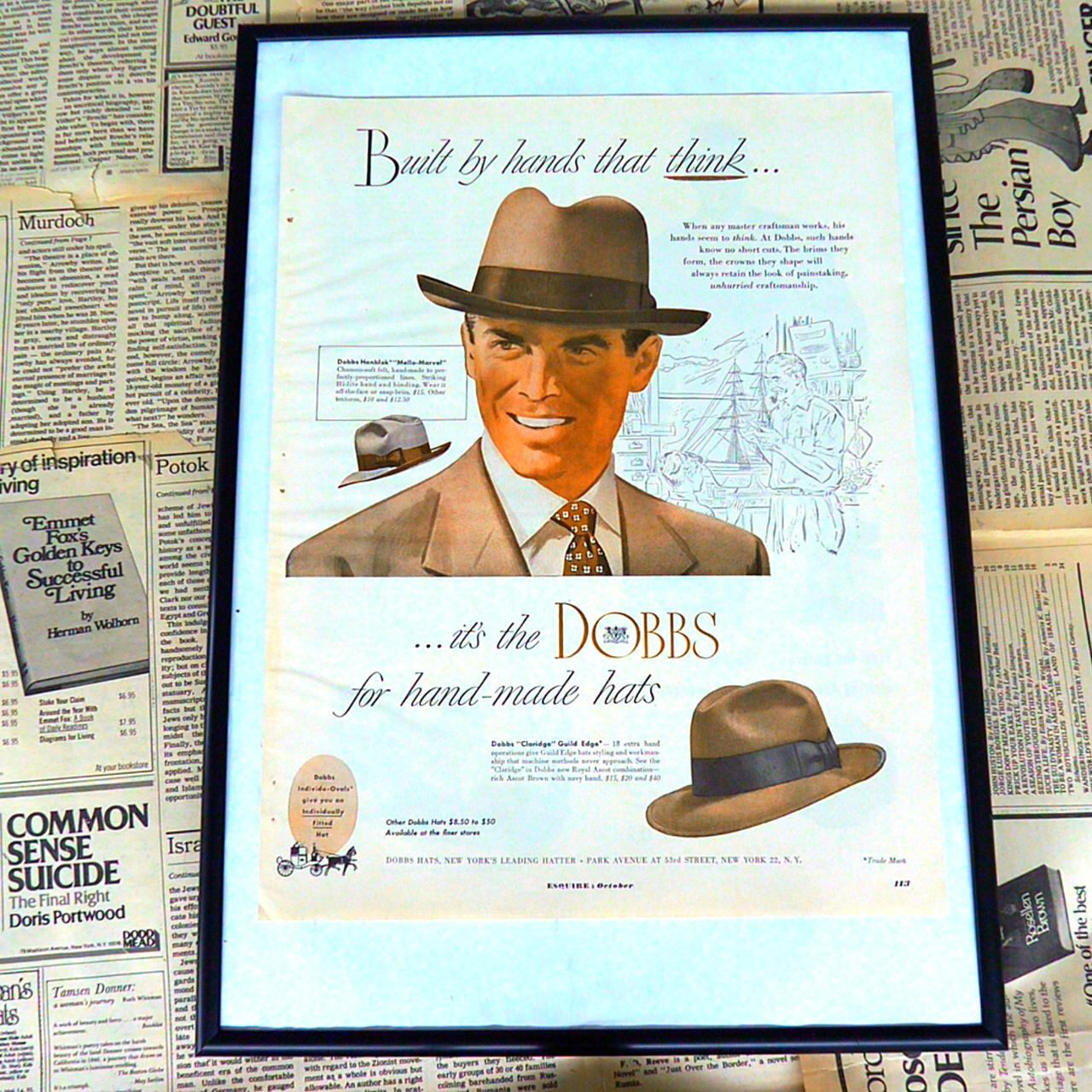 Dobbsは、アメリカ・ニューヨークの老舗帽子メーカーであり、特に紳士用フェドラハットやトラディショナルなスタイルの帽子で高い評価を受けています。1920年代からニューヨーク・パークアベニューに構えた店舗で展開し、熟練職人による手作業の品質にこだわった製品づくりが特徴です。『Built by hands that think...』というコピーにも表れている通り、単なるファッションアイテムとしての帽子ではなく、洗練された大人の男性のための伝統と気品を象徴するアイテムを提供し続けています。Dobbsの帽子は、クラシックなデザインながら現代にも通じる上質な素材と卓越した職人技術が魅力で、多くの紳士から長きにわたり愛されてきました。