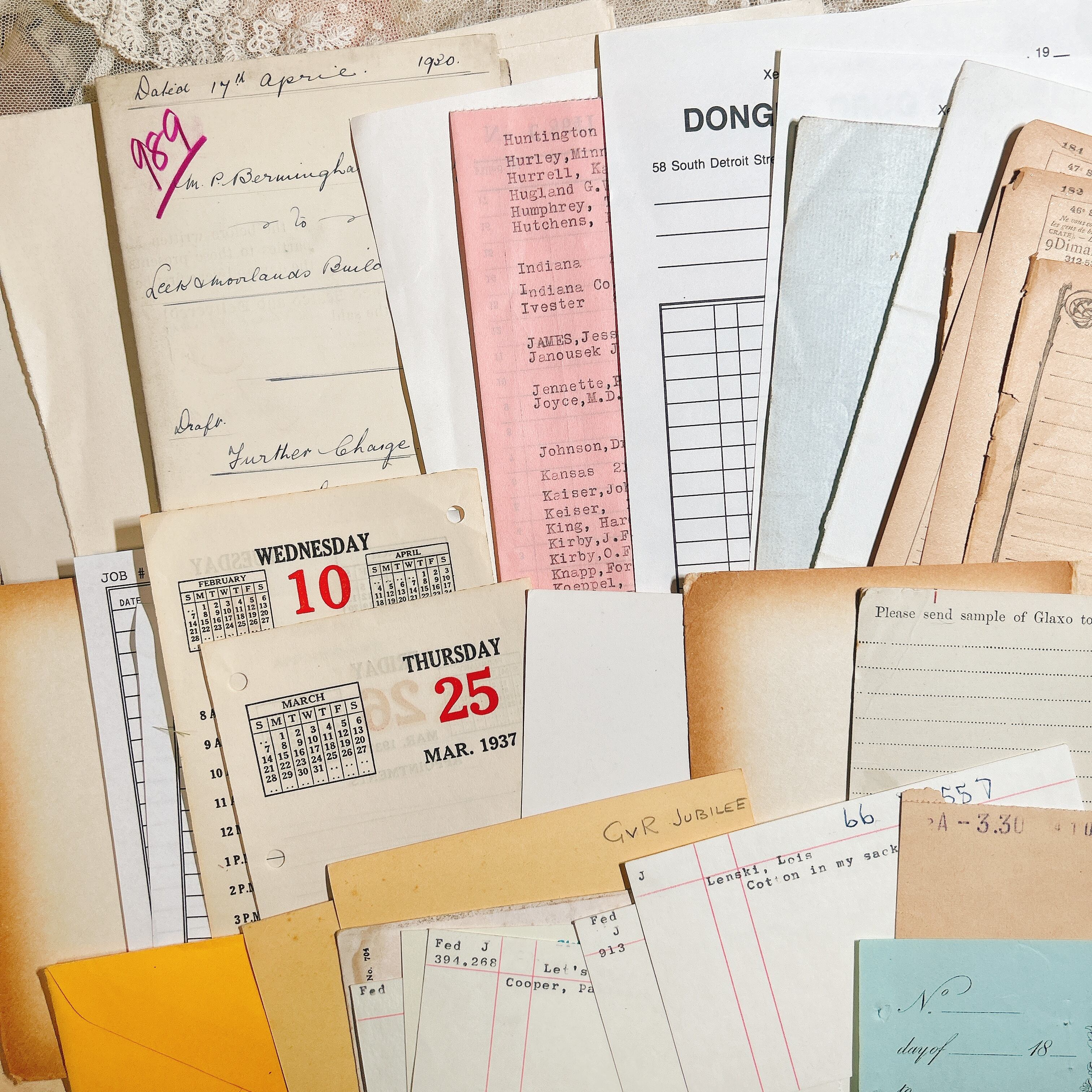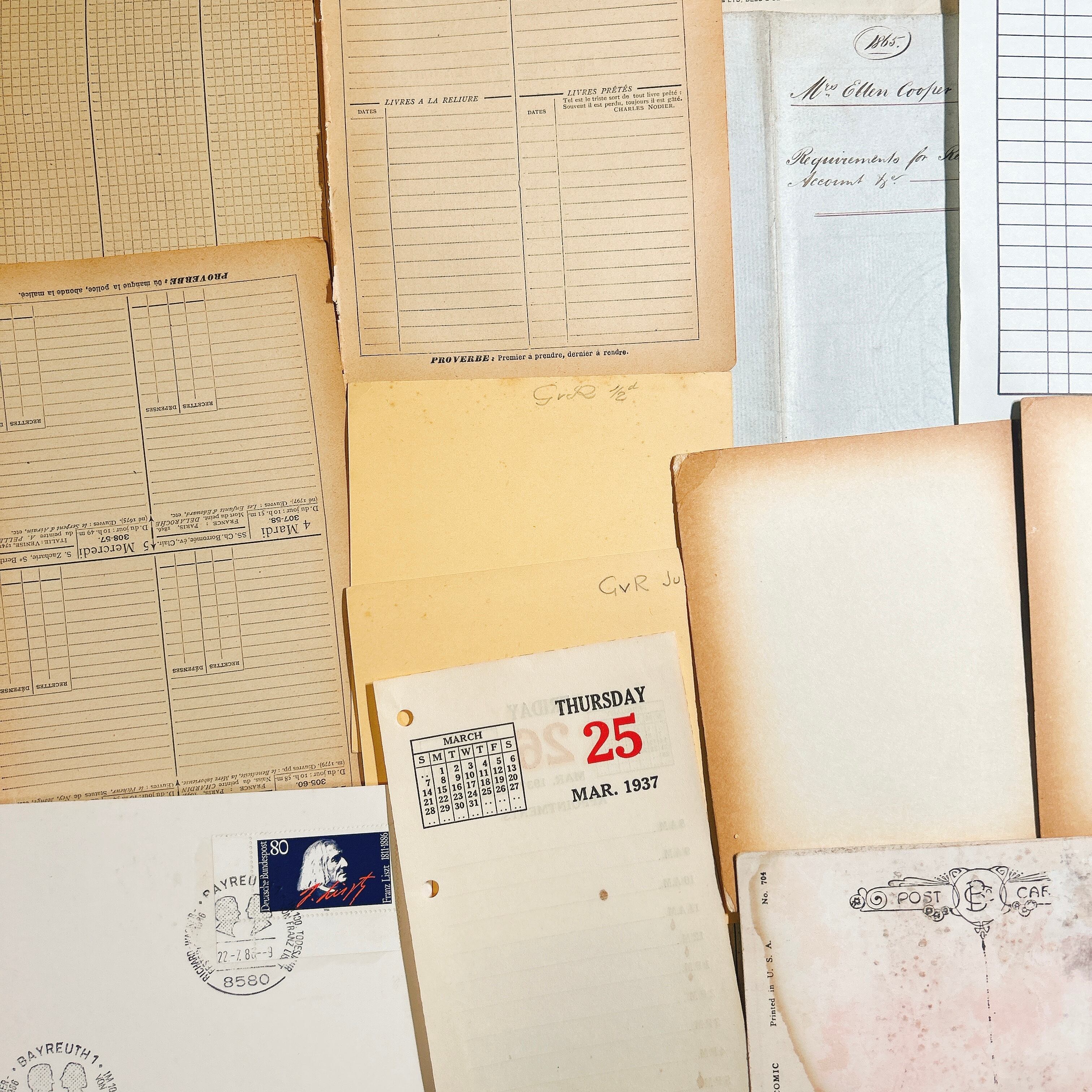 アンティークの書類や手紙、書けるページがたっぷり詰まった100gのセットです。ジャンクジャーナルやコラージュ、スクラップブック作りにぴったりのアイテムです。古い文字や美しい手書きのフォントが魅力的で、作品に独特のアンティーク・ヴィンテージ感を加えることができます。