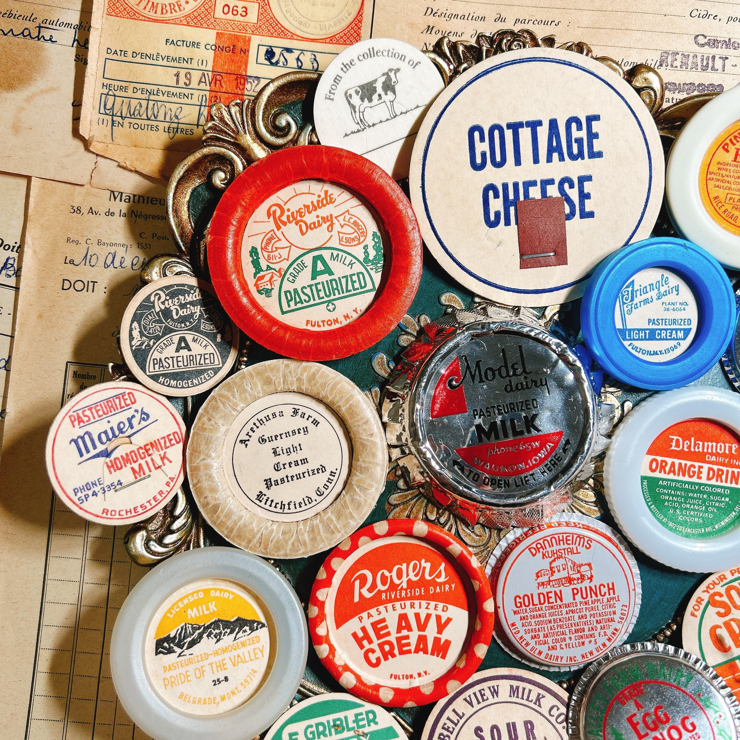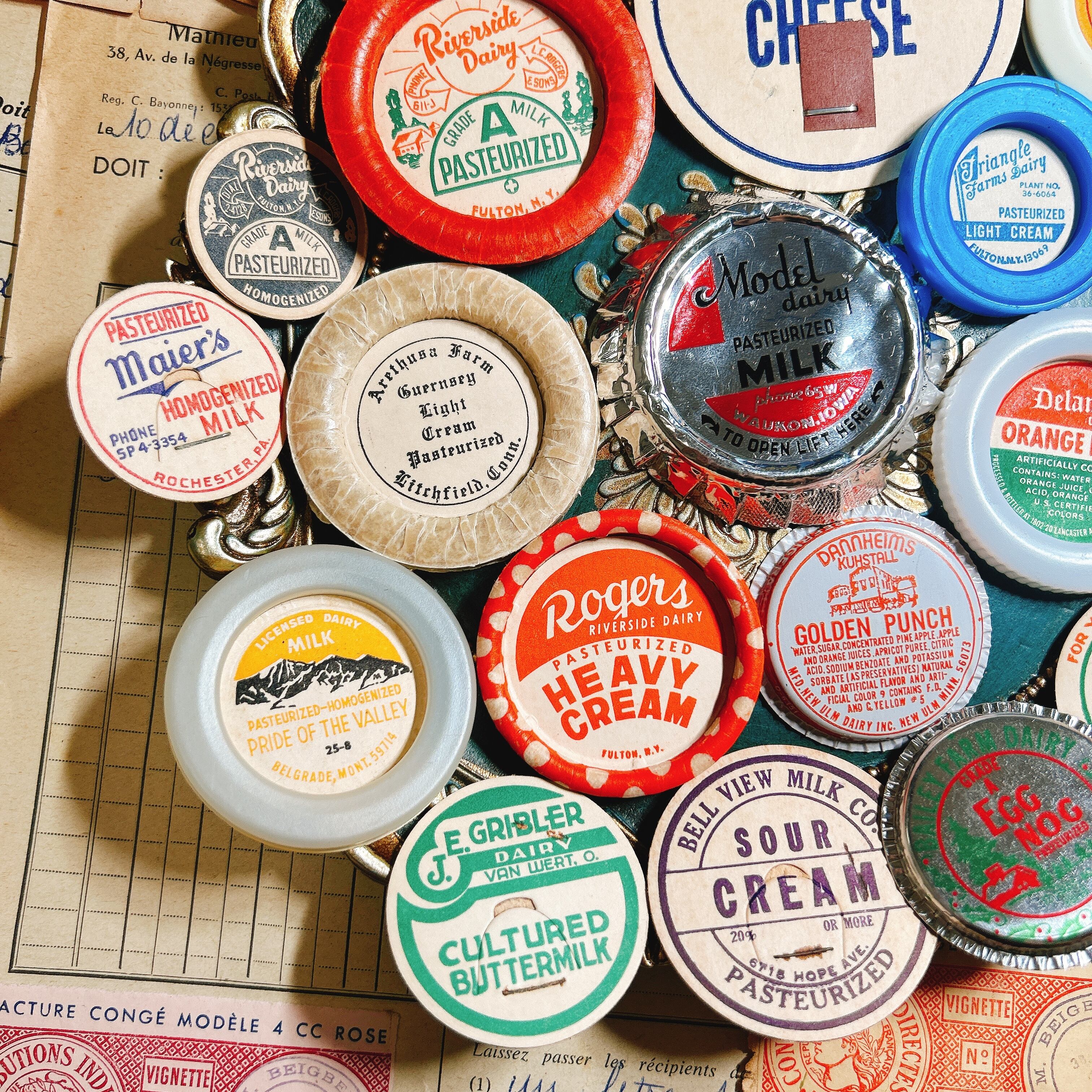 20個 ヴィンテージ アメリカ 牛乳 ミルクキャップ 色々セット E1985