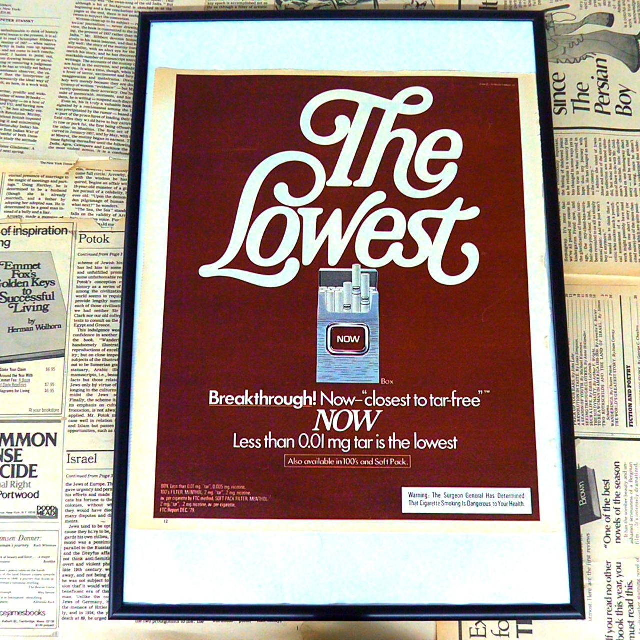 NOWは、1970年代のアメリカにおいて展開されたタバコブランドです。当時の健康志向の高まりに対応し、タールやニコチンの含有量が極めて低いことを特徴とした製品を販売しました。広告には“Breakthrough! Now—closest to tar-free”などのキャッチフレーズが使われ、喫煙への健康リスクが社会的に注目される中で、より“クリーン”な選択肢としてアピールされていました。NOWブランドは時代背景を色濃く反映し、タバコ産業の中でも革新的なポジションを築いた企業です。