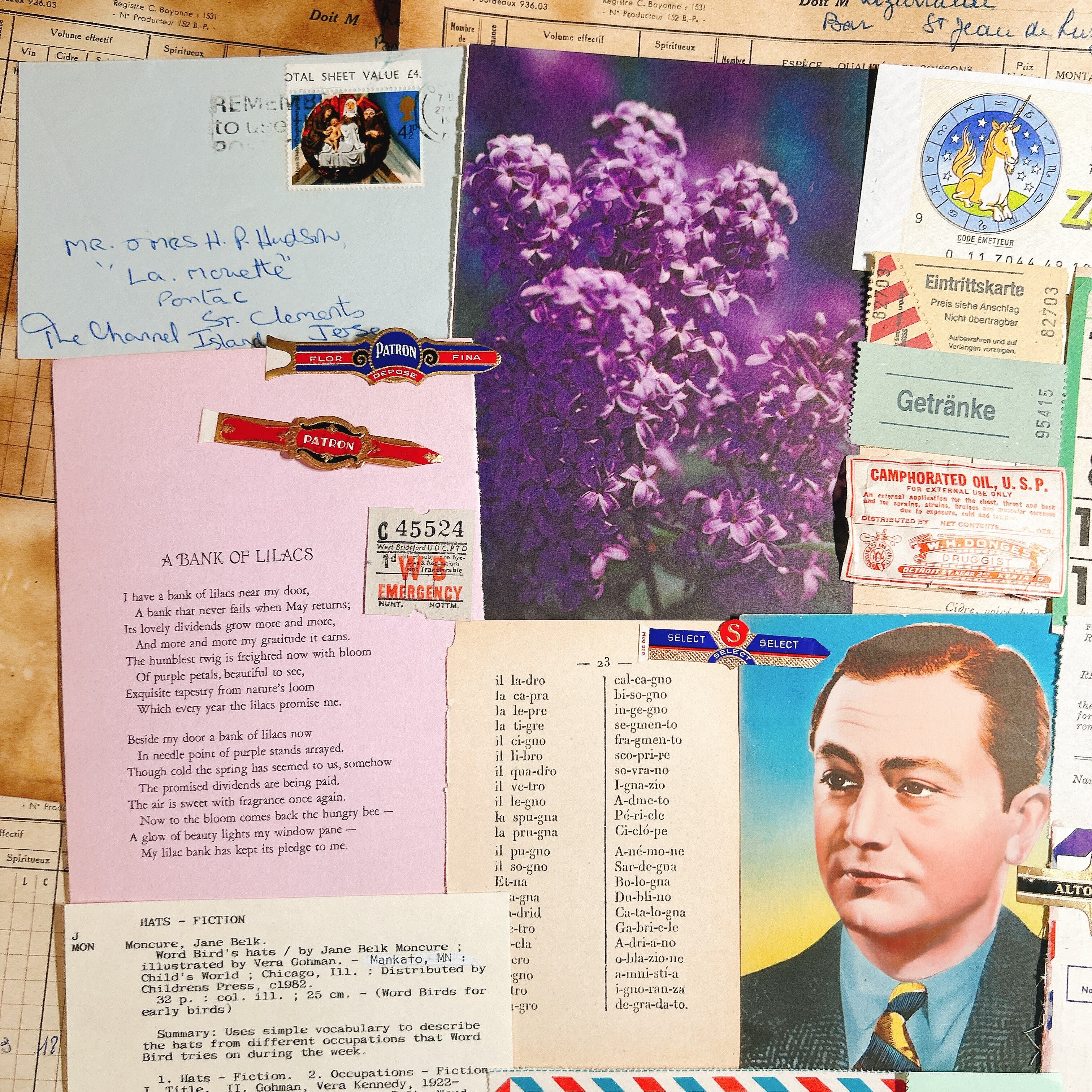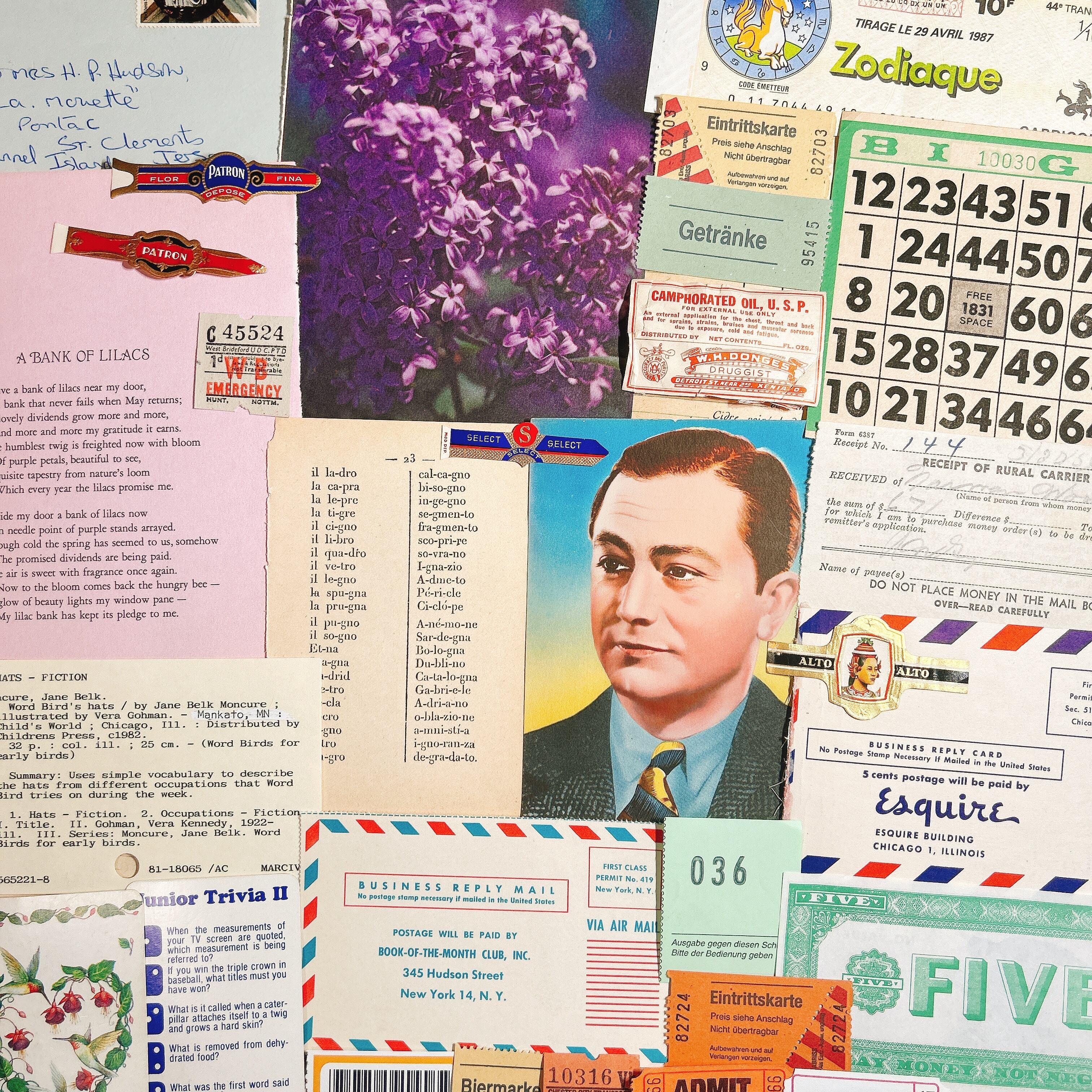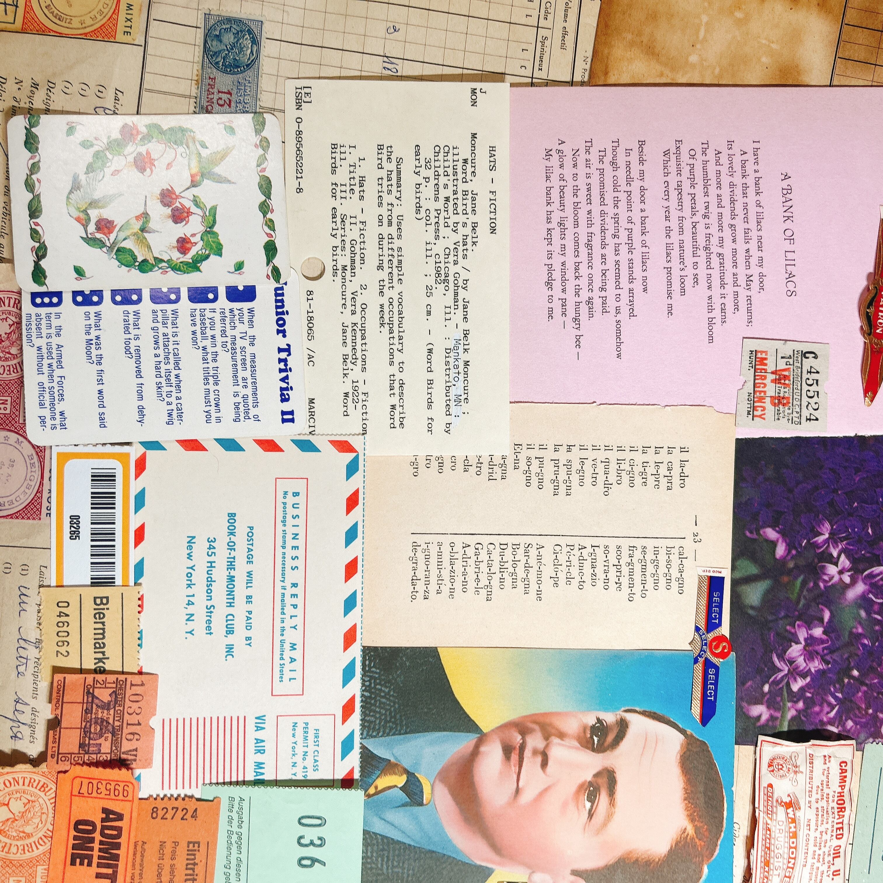 これらは単なる紙片ではなく、それぞれが一篇の物語の断片です。長い間しまわれていた引き出しや箱の中から出てきたような、忘れられていた宝物のような存在です。コラージュやジャンクジャーナル、スクラップブックの素材としてはもちろん、額に入れて飾っても絵になる一点ものの美しさがあります。どれも一点もので同じものは二つとありませんので、古い紙の風合いや経年によるしみや焼けも、アンティークならではの魅力としてお楽しみください。