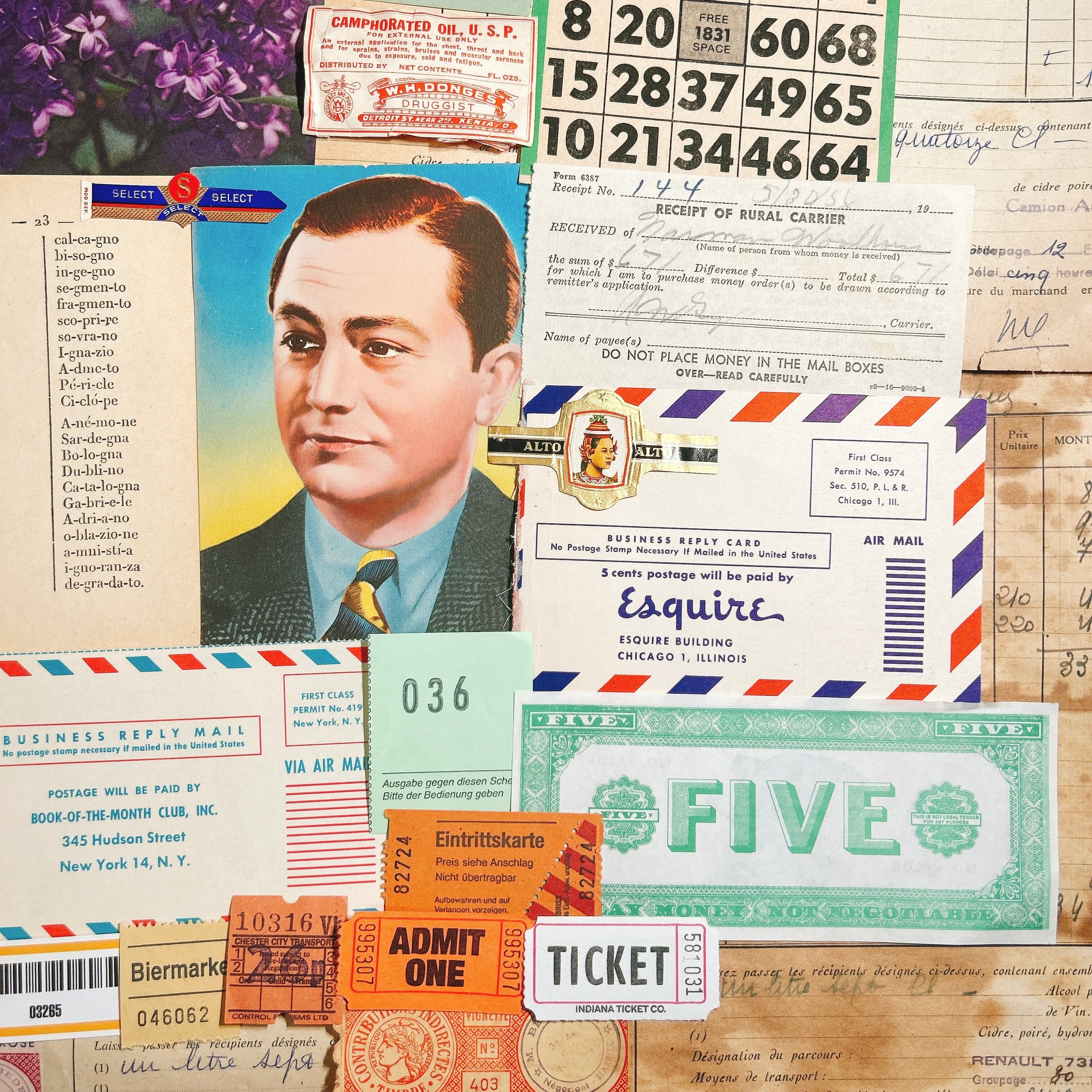 アンティーク ヴィンテージ 小さな紙もの30ピース コラージュ 素材 E2037