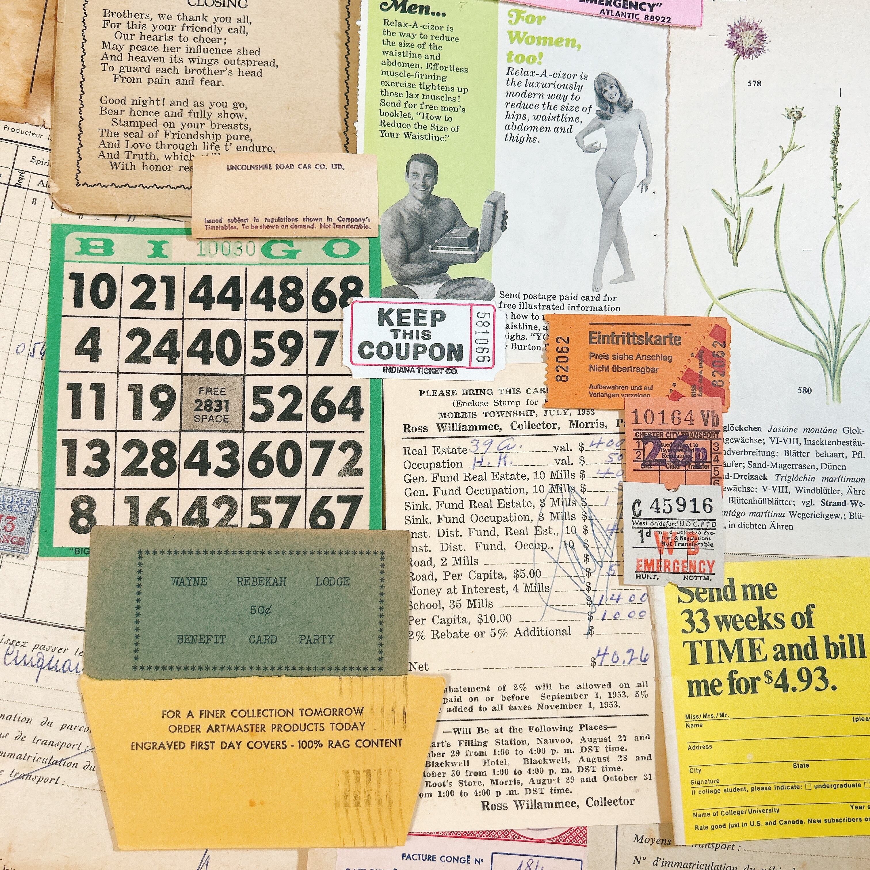 アンティーク ヴィンテージ 小さな紙もの30ピース コラージュ 素材 E2065