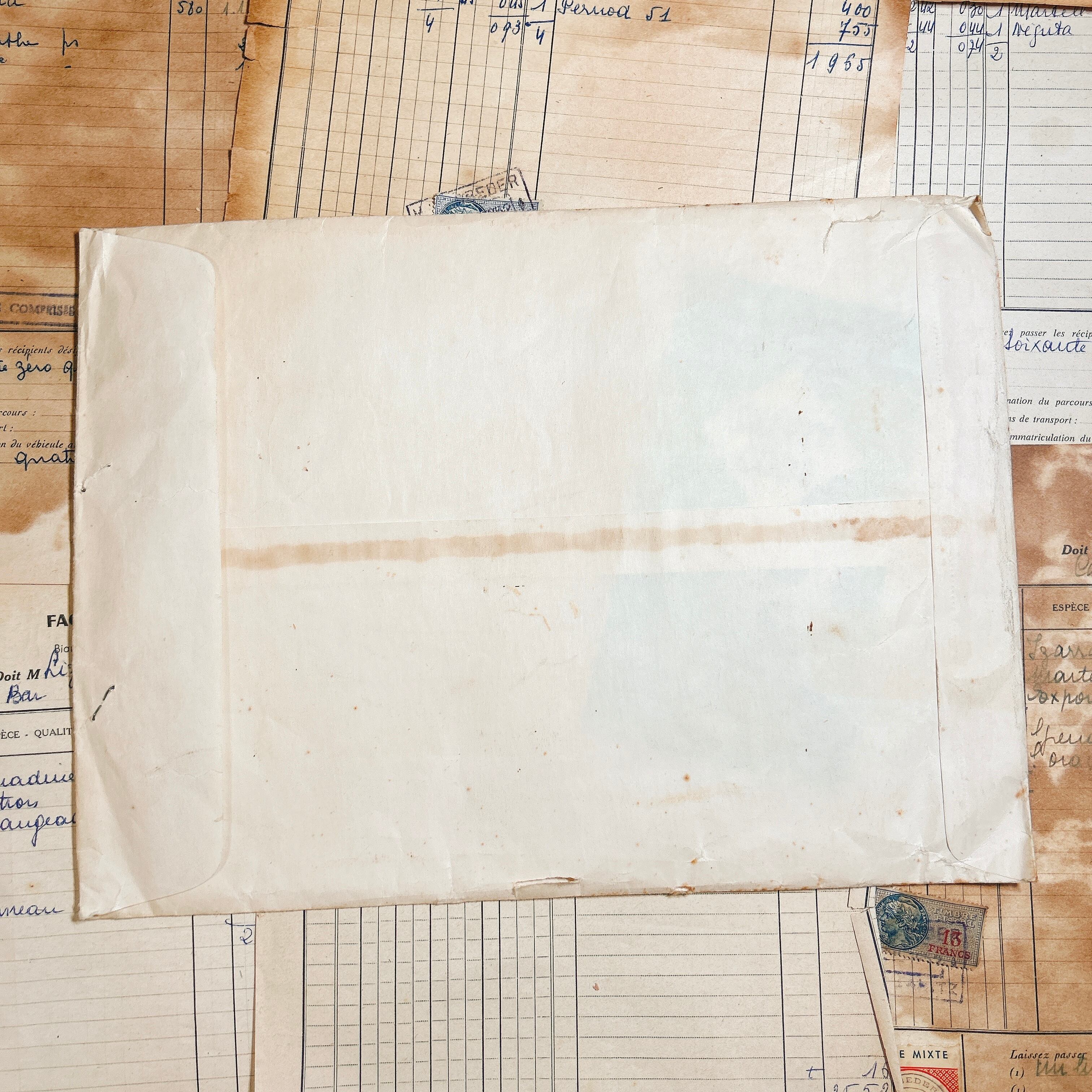 封筒は経年によるヤケやシミ、角折れなどがあるものの、印刷やイラストはしっかりと残っており、紙モノコレクターやアメリカンヴィンテージファンにはたまらない資料です。ジャーナル素材として切り抜いて使っても、額装してインテリアに取り入れても映える、雰囲気たっぷりのアイテムです。
