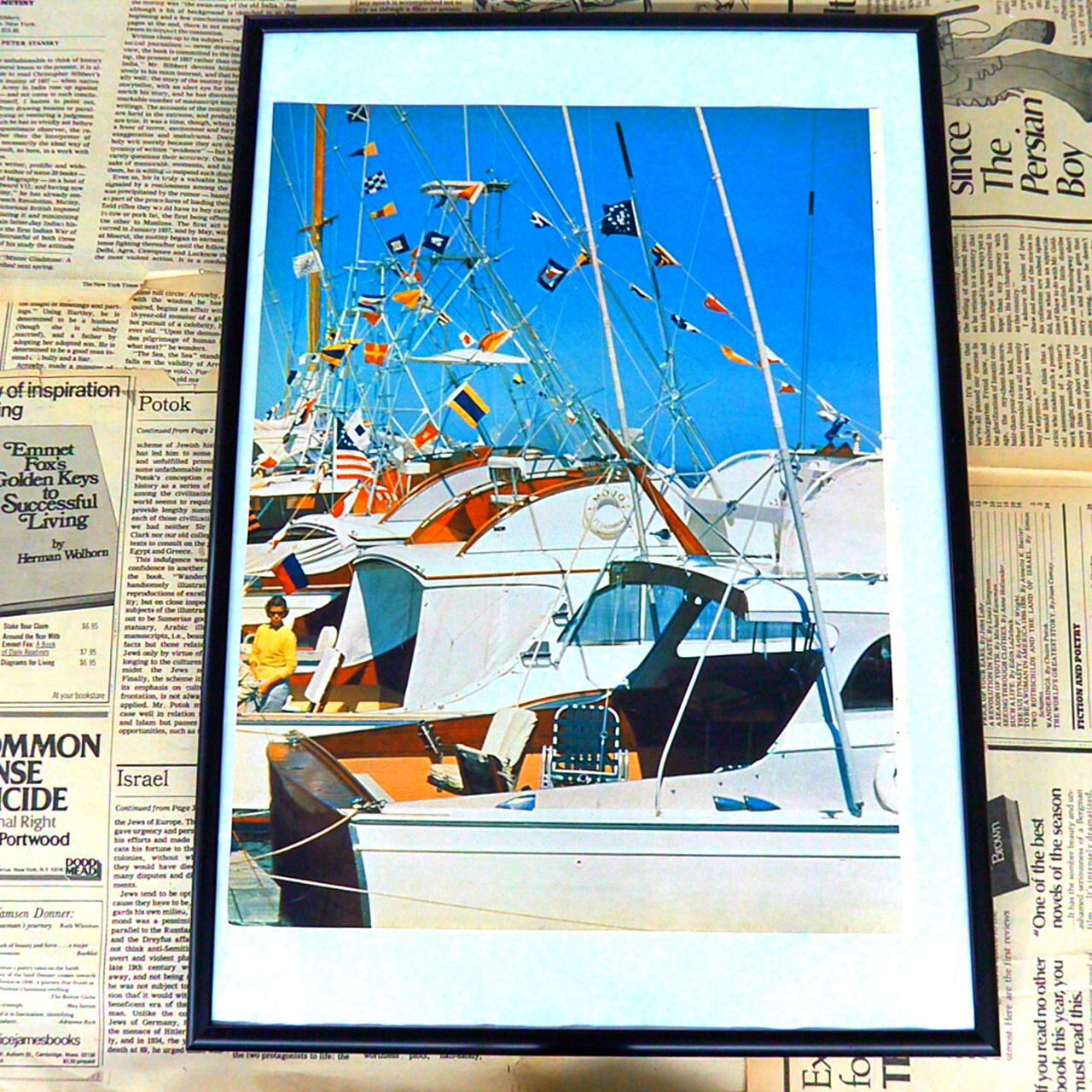 このイラストは、リビングルームと思われる場所でソファに座る男女を描いています。男性は軍服姿でやや緊張した面持ち、女性はリラックスしながらも少し挑発的な態度で男性を見ています。二人の間には微妙な距離感と心理的な駆け引きが感じられ、ユーモラスかつ風刺的な雰囲気を醸しています。キャプションの『You’re certainly slow for a jet ace.』は、現代的な兵器やスピードの象徴である“ジェットエース”という肩書きにも関わらず、恋愛面では進展が遅い男性を皮肉っています。当時の社会背景や男女関係を反映しながらも、今見てもクスッと笑えるユーモアが光る一枚です。ペン画のタッチも味わい深く、インテリアとして飾っても雰囲気のあるヴィンテージアートです。