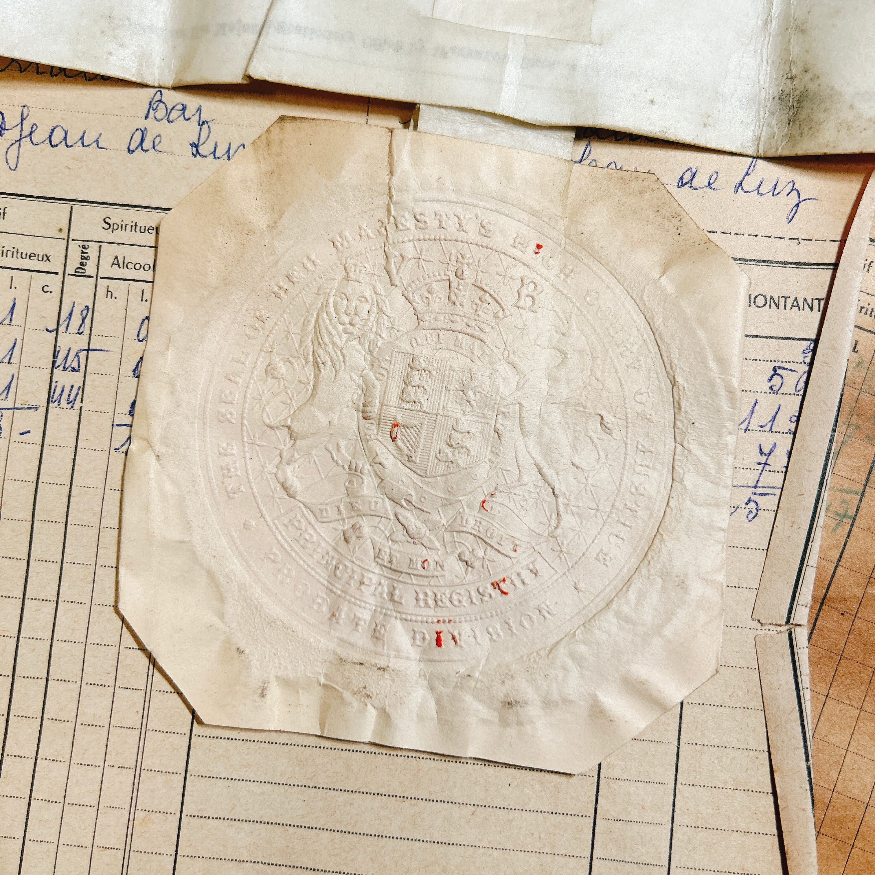 文面は美しい筆記体で記され、下部には裁判所の署名とともに、立体的なエンボス加工による大きな王室紋章シールが貼付されています。この紋章は英国王室の紋章と “The Seal of Her Majesty’s High Court of Justice” の文字が刻まれ、紙の質感や押印の陰影が当時の格式を物語ります。