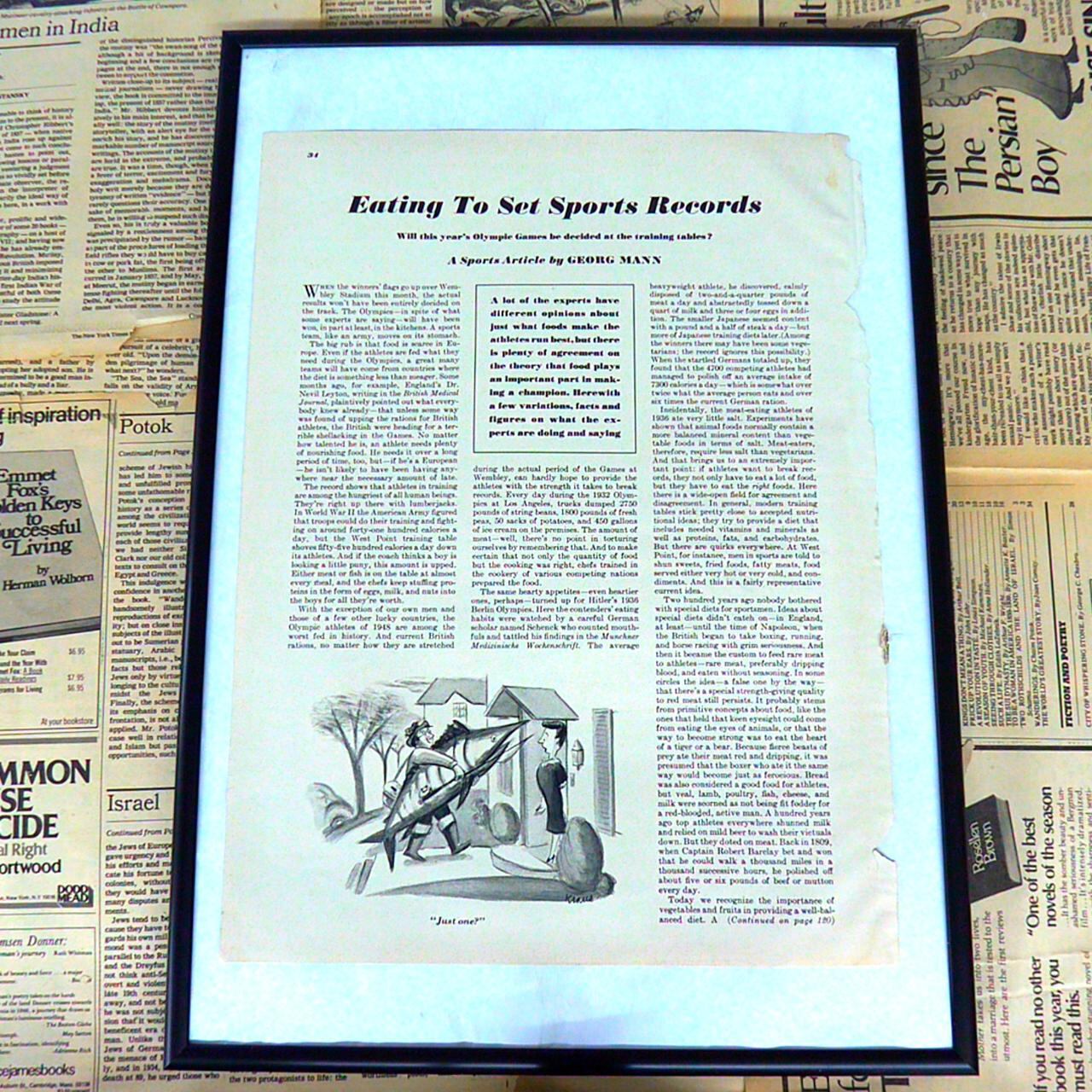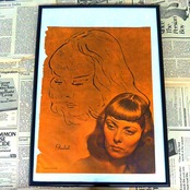 このイラストは、女性の顔をリアルに描いた肖像画と、その上部にラフな線画で同じ女性の横顔を重ねた構成となっています。『Gladioli』というキャプションが添えられており、これはグラジオラス(花の一種)を意味します。イラスト全体は温かみのあるセピア色調でまとめられ、1970年代誌面特有のノスタルジックな雰囲気を醸し出します。女性の表情はどこか憂いを帯びており、瞳の動きや口元のニュアンスから繊細な感情が伝わってきます。上部のラフな線画は彼女の内面や記憶、夢想を象徴しているかのようで、写実的な下部とは対照的に自由なタッチとなっています。部屋のインテリアとしても素敵な存在感があり、ポートレートアートやヴィンテージ雑誌デザインの美しさを感じられる1枚です。