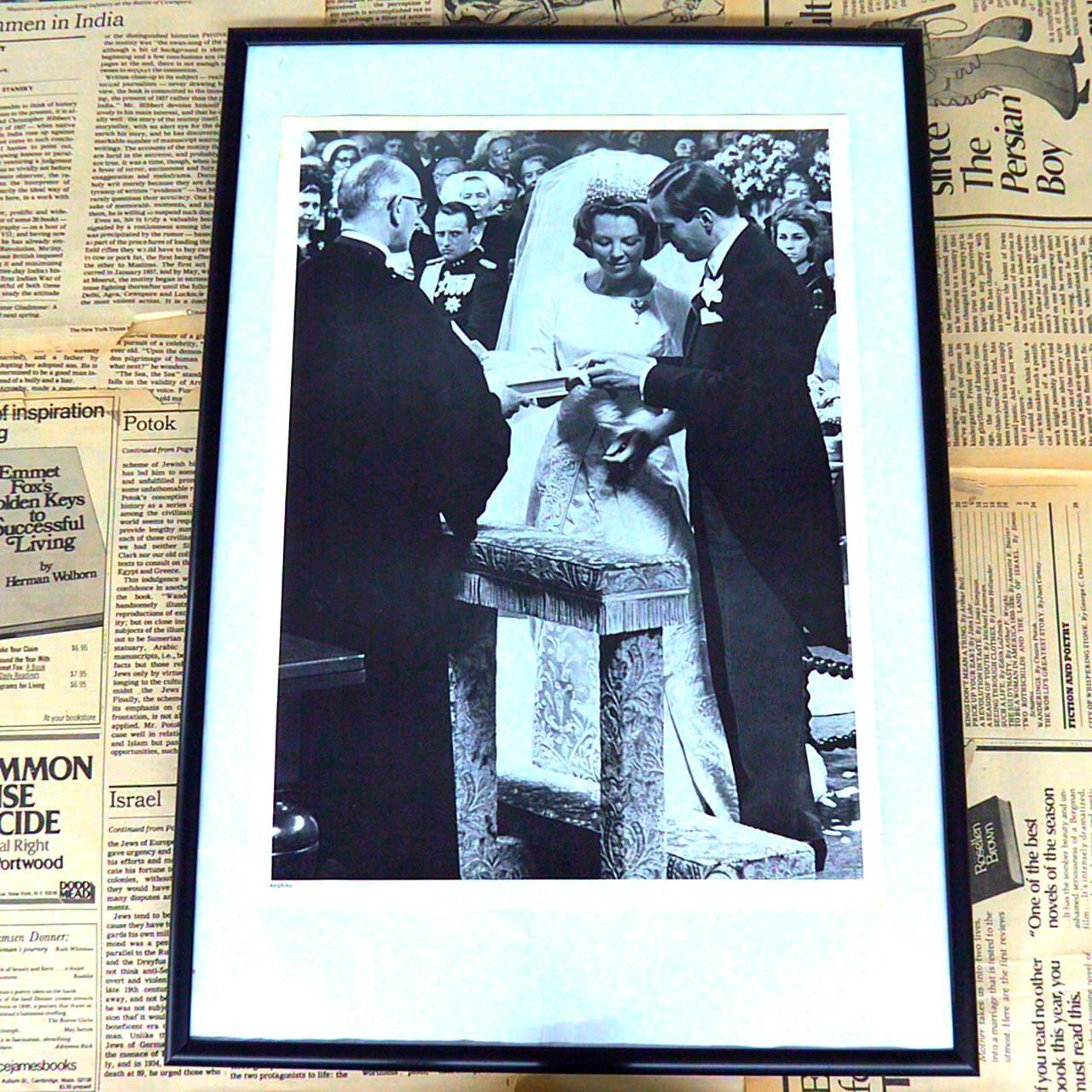 このページは、モノクロ写真によるファッションイラストです。3人の女性がエレガントなロングドレスに身を包み、モンテカルロの上流階級の雰囲気を醸し出しています。女性たちはそれぞれ異なるデザインのドレスを身にまとい、ポーズや視線に洗練された自信が感じられます。フランス語の解説文には、ドレスやジュエリーのデザイナー(例えばVan Cleef & Arpelsなど)が紹介されており、上質な素材と洗練を極めたデザインが強調されています。背景はシンプルにまとめられており、モデルの立ち姿が際立ちます。このイラストは、1960~1970年代の華やかなモードを象徴するもので、当時のハイファッションやライフスタイルへの憧れを刺激するヴィンテージ感が魅力です。アートとしての価値も高く、インテリアとして飾ることで空間に上品なアクセントを加えます。