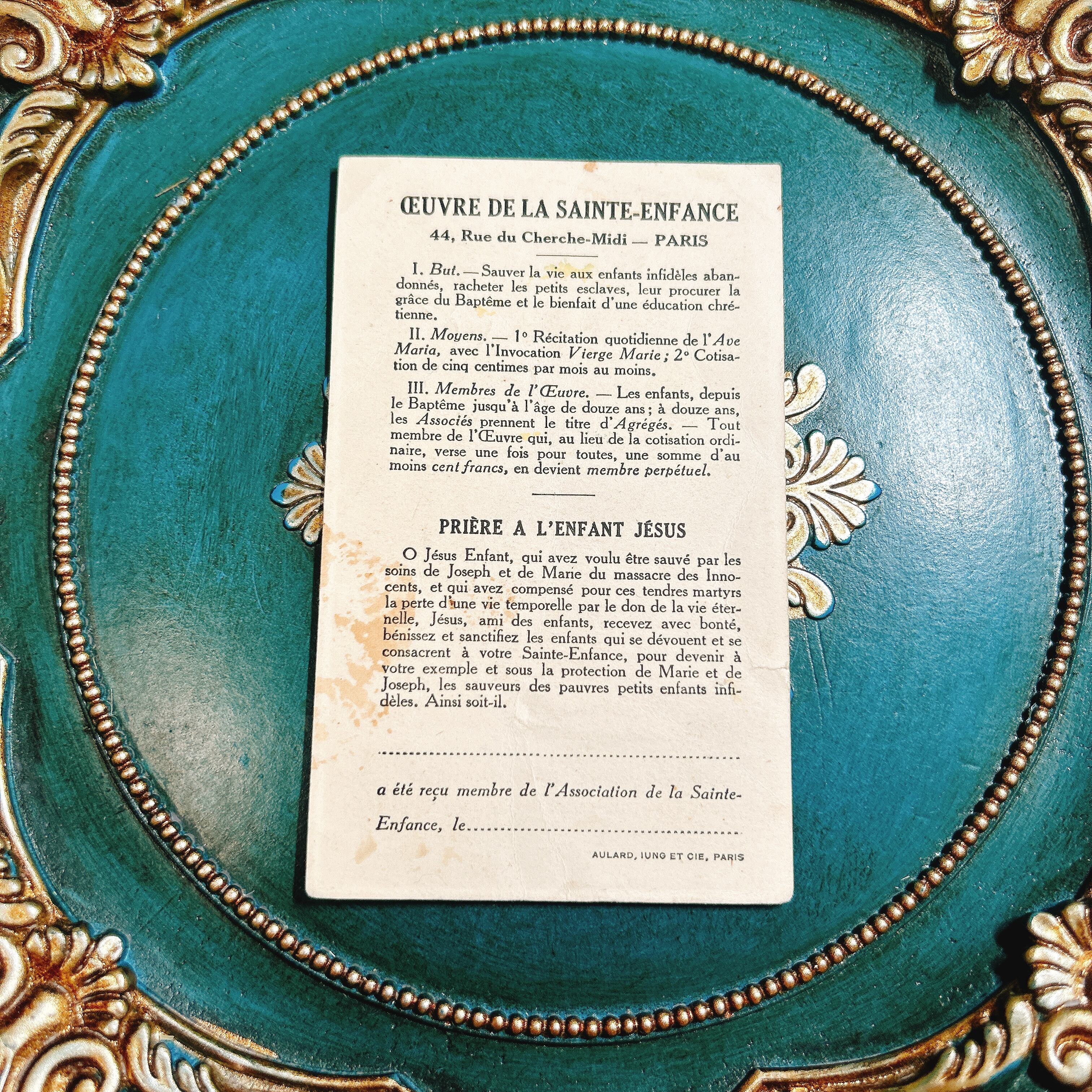 約90年前の印刷物ながら保存状態は良く、時代を感じさせる紙質とフォントが魅力です。聖書教育史や宗教的ヴィンテージ資料としてコレクションに加える価値が高い一品であり、またアートやコラージュ素材としても活用できる趣深いカードです。
