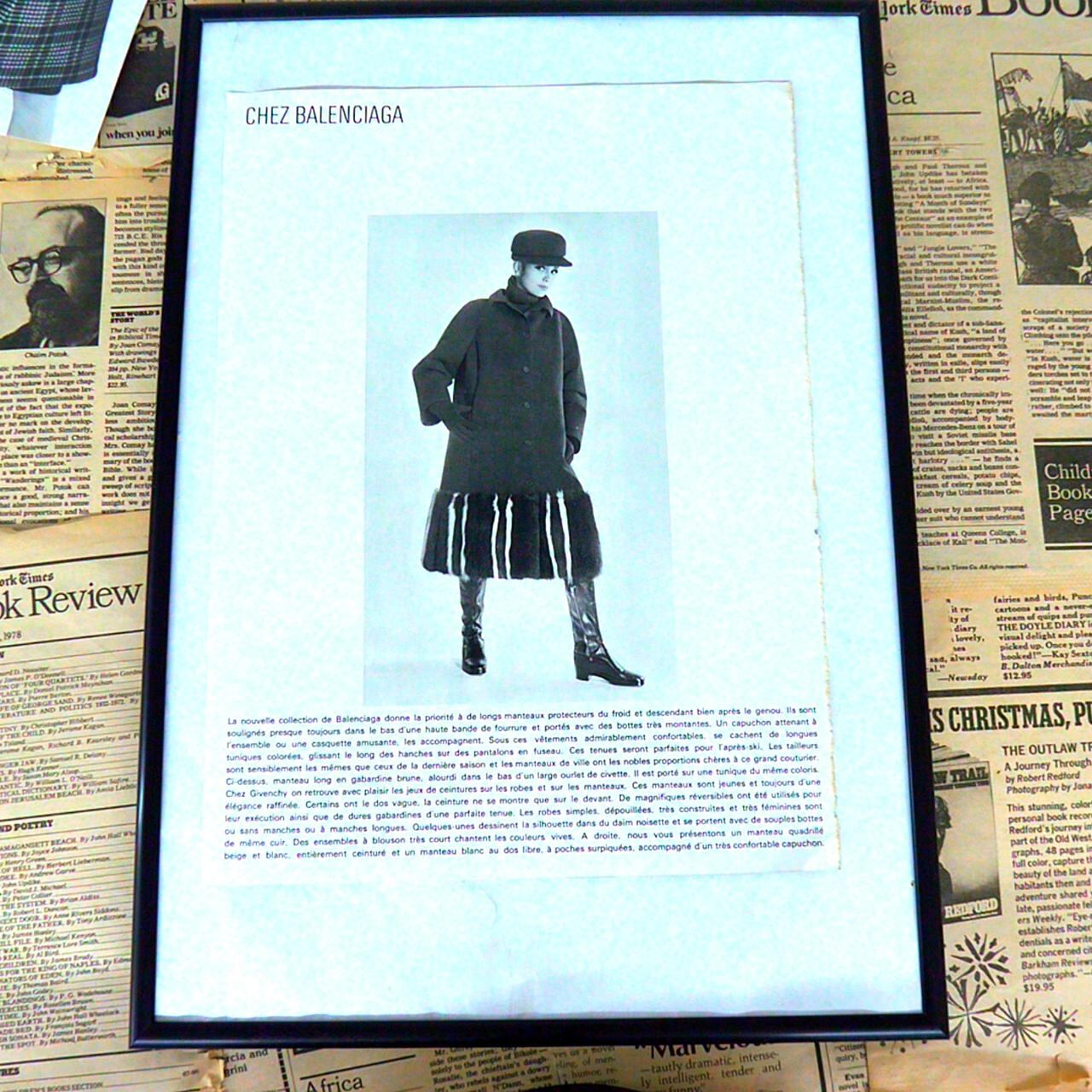 Balenciaga(バレンシアガ)は、スペイン発祥の高級ファッションブランドで、クリストバル・バレンシアガによって1917年に設立されました。その後パリに拠点を移し、革新的かつ建築的なシルエットや、エレガントで実用的なデザインでファッション界に大きな影響を与えてきました。バレンシアガはコートやドレスをはじめとしたウェアの構造美、独特な素材使いで知られ、時代を超えてモードの最前線で高い評価を受けています。1970年代もその先鋭的なスタイルは健在で、実用性と洗練された美を兼ね備えたアイテムが数多く発表されていました。