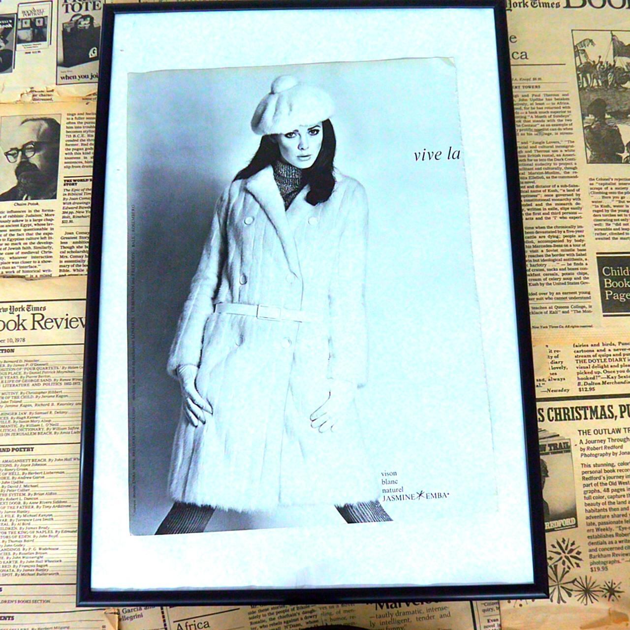 EMBAは、1920年代にアメリカで設立された歴史あるファー(毛皮)ブランドです。高品質な毛皮製品を展開し、特にミンクやフォックスなどの高級ファーを使用したコートやファッションアイテムで知られています。EMBAの製品は、洗練されたデザインと極上の素材感が特徴で、セレブリティやファッション愛好家から長年にわたり支持されています。伝統と革新を融合させたスタイルが魅力で、当時の高級誌やファッション誌に多くの広告が掲載されていました。EMBAは、その品質とラグジュアリーなイメージにより、グローバルな名声を確立しています。