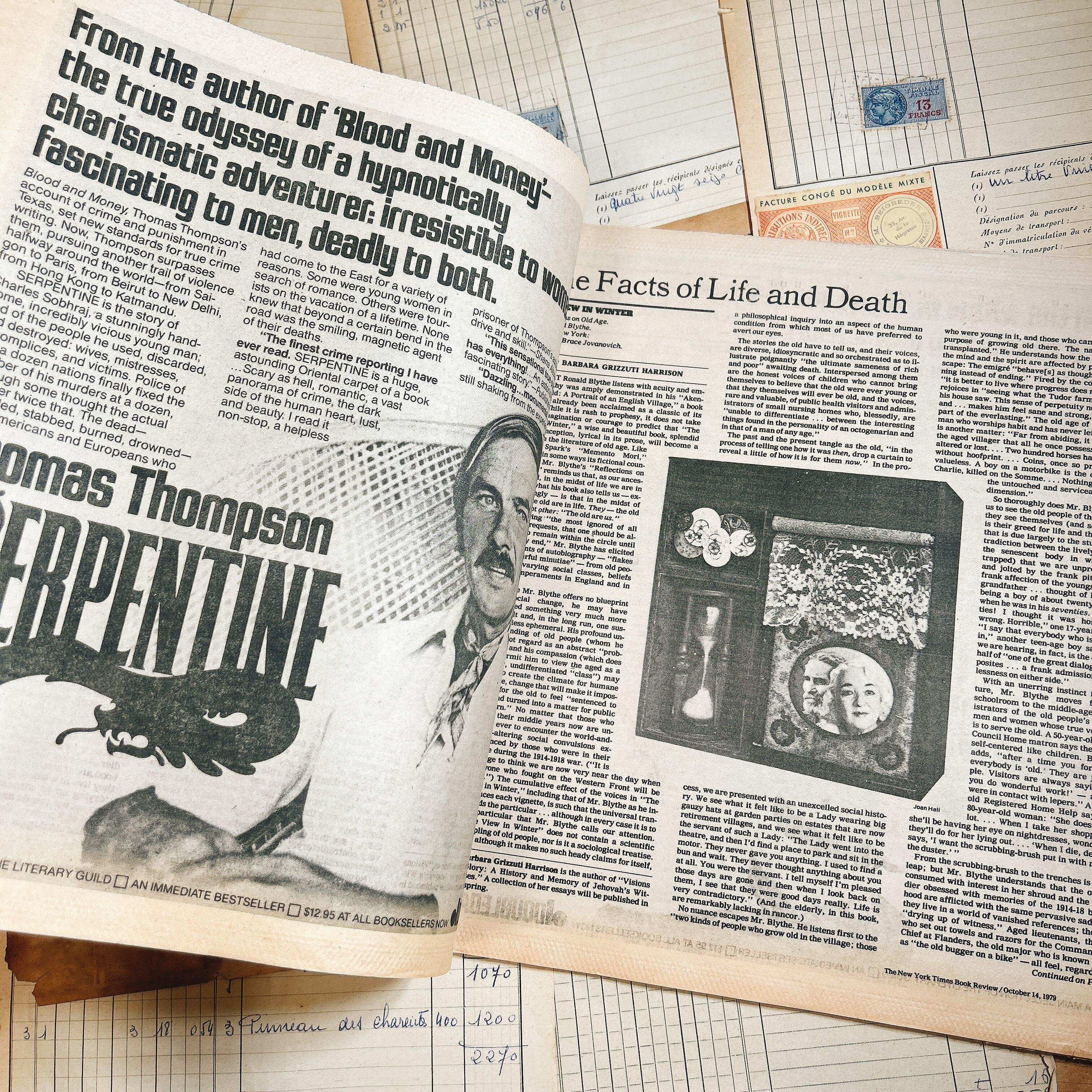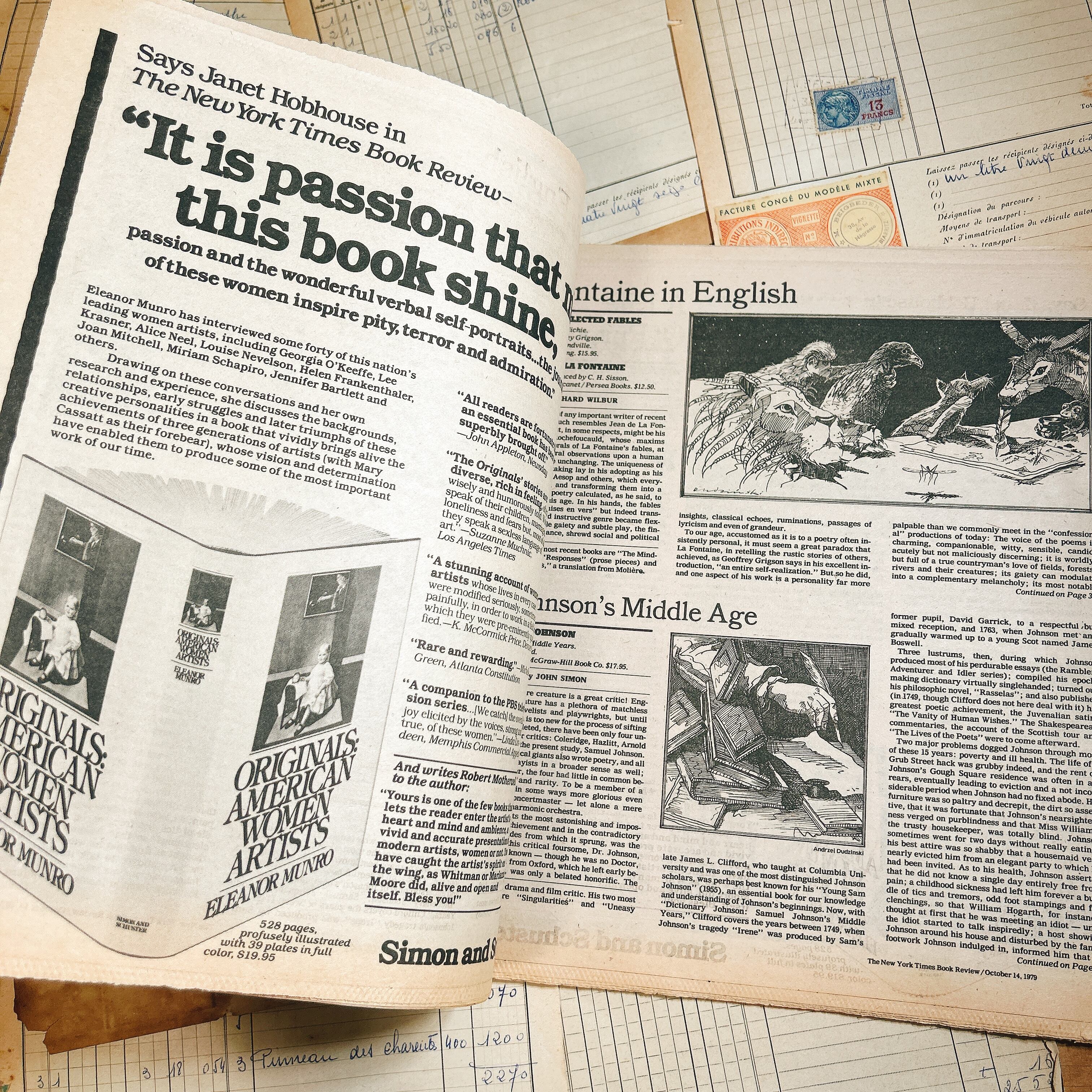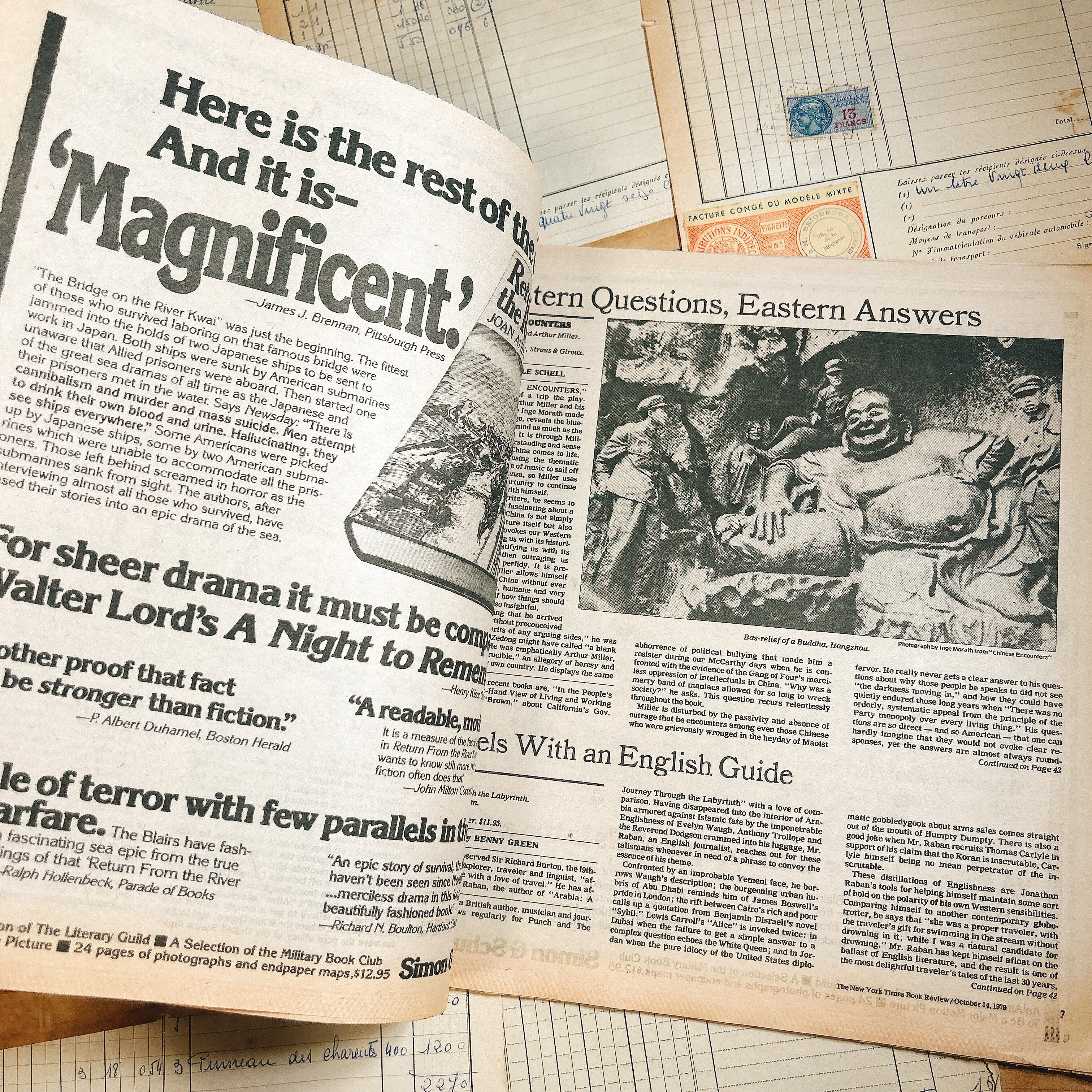 こちらは1980年代『The New York Times Book Review』のヴィンテージ新聞1冊です。ニューヨーク・タイムズが毎週日曜日に発行しているブックレビュー専門の別冊紙で、文学やノンフィクションを中心にした評論や特集が豊富に掲載されています。1980年当時の知的文化を色濃く反映した内容が紙面を彩ります。