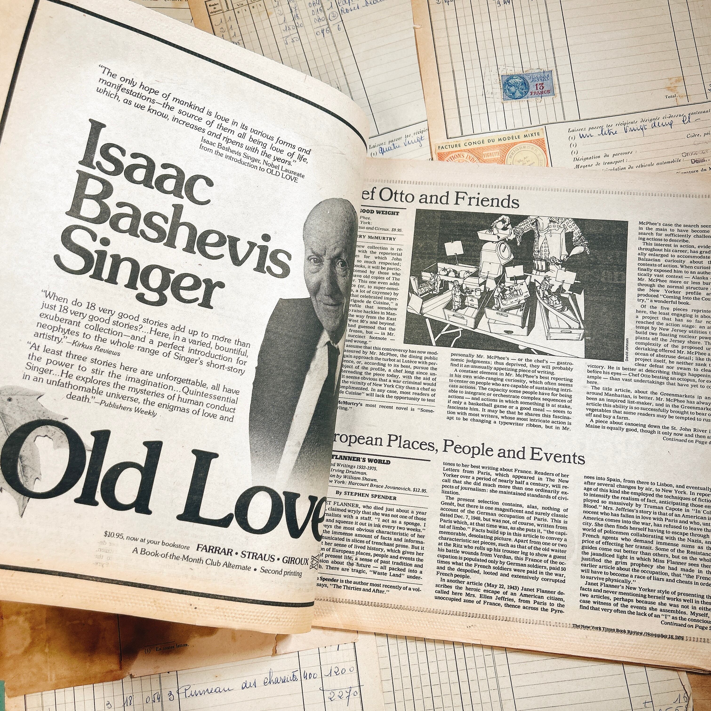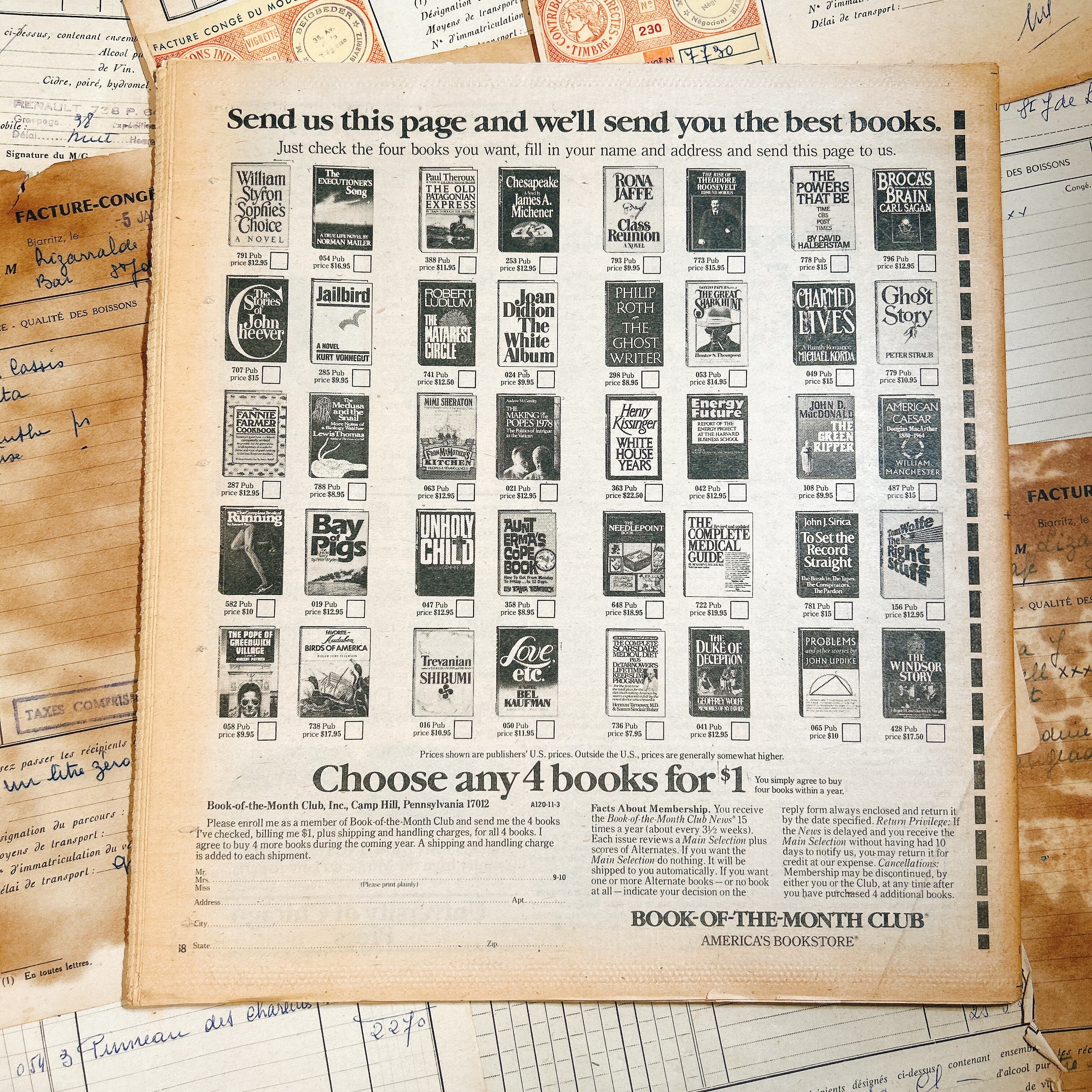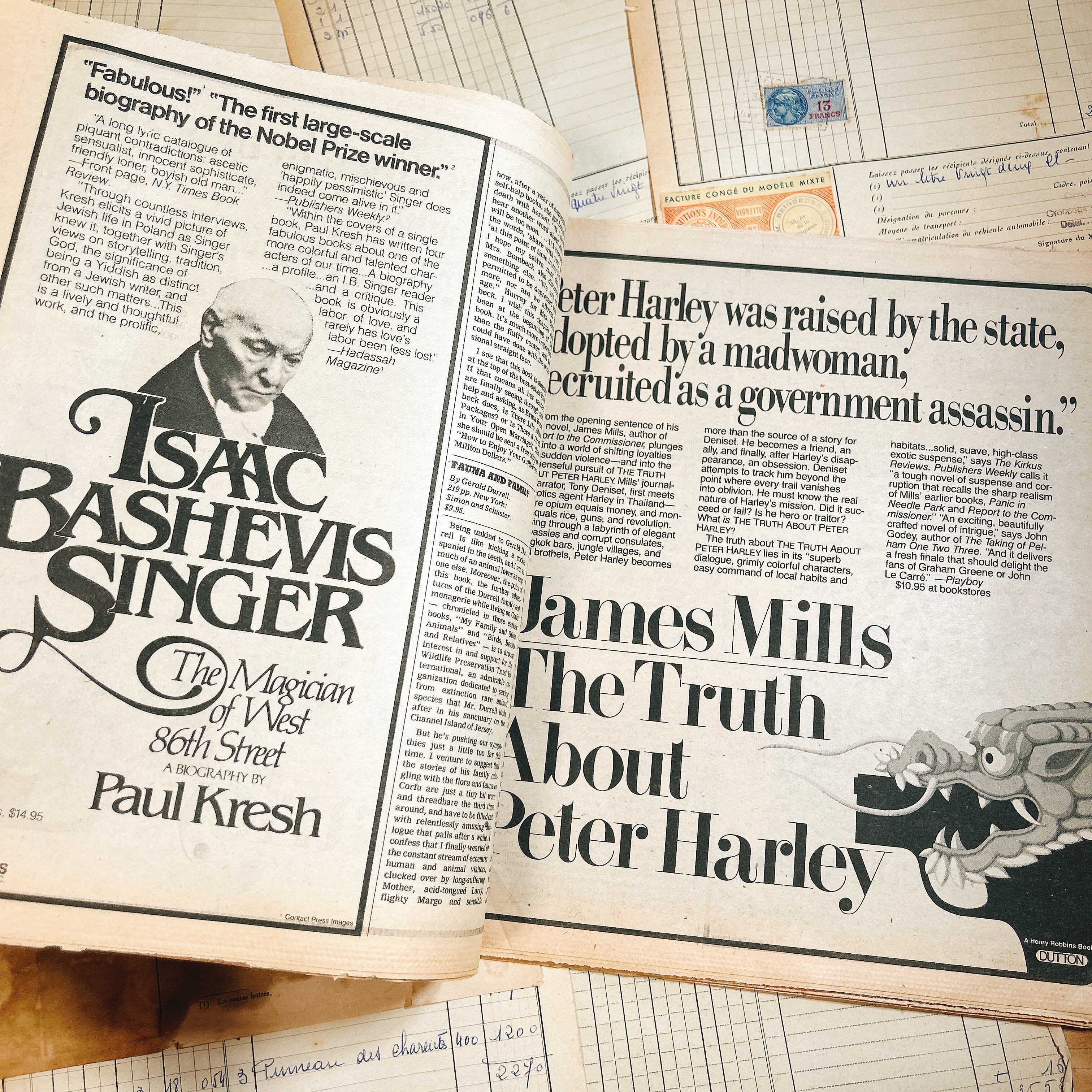 こちらは1980年代『The New York Times Book Review』のヴィンテージ新聞1冊です。ニューヨーク・タイムズが毎週日曜日に発行しているブックレビュー専門の別冊紙で、文学やノンフィクションを中心にした評論や特集が豊富に掲載されています。1980年当時の知的文化を色濃く反映した内容が紙面を彩ります。