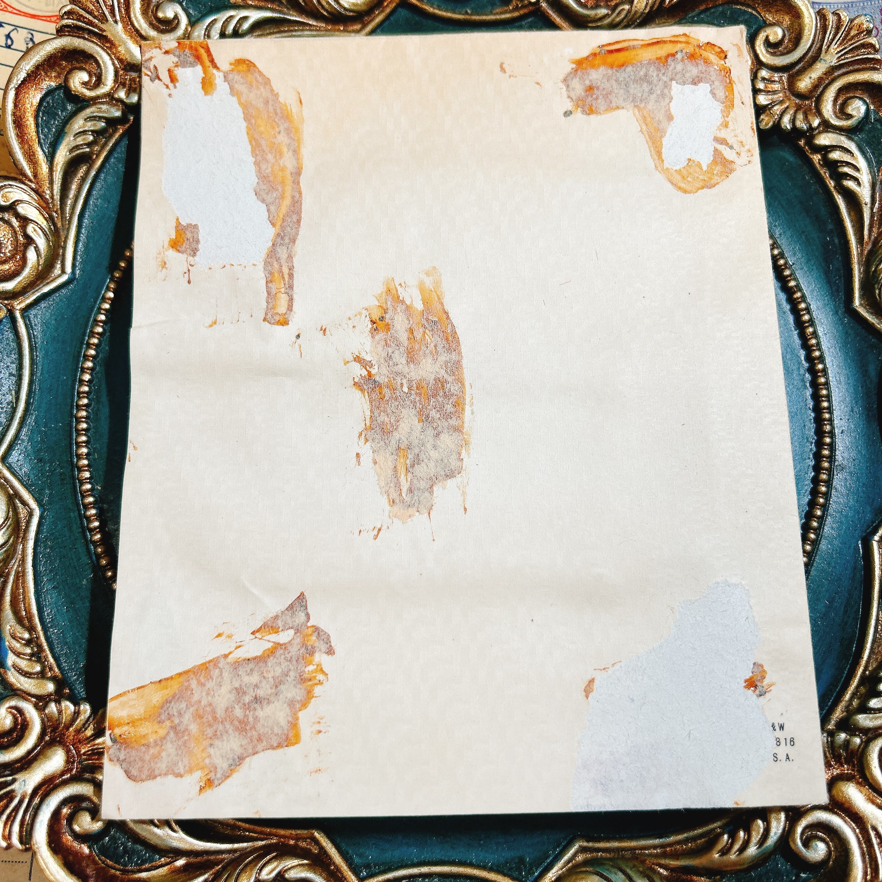裏面には経年による紙の剥がれや糊跡が見られ、長い年月を経てきたアンティークならではの風合いが感じられます。20世紀中頃のアメリカで作られたカードと考えられ、当時の印刷やデザインの魅力をそのまま楽しむことができます。コレクションとしてはもちろん、ディスプレイや撮影小物としても映える一点です。