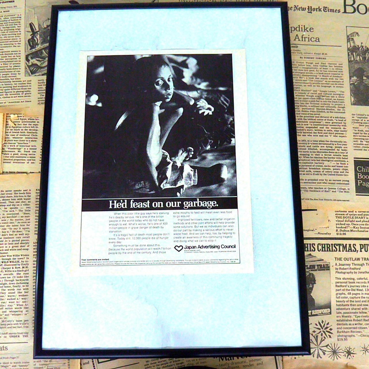 Japan Advertising Council(日本広告審議会)は、社会的・公共的な課題に取り組む広告キャンペーンを展開する団体です。この団体は、企業や自治体、メディアと協力し、社会的な意識啓発や問題提起を目的とした広告制作を行ってきました。貧困や飢餓、環境問題など、深刻な社会問題をテーマにした印象的な広告を制作し、多くの人々に考えるきっかけを提供しています。特定の商品やサービスの宣伝ではなく、社会全体の意識変革を目指したメッセージ性の高い広告活動が特徴です。1970年代には特に、飢餓や食糧問題、環境問題などグローバルなテーマを取り上げ、見る人の心に強い印象を残すビジュアルとキャッチコピーで問題意識を喚起しました。