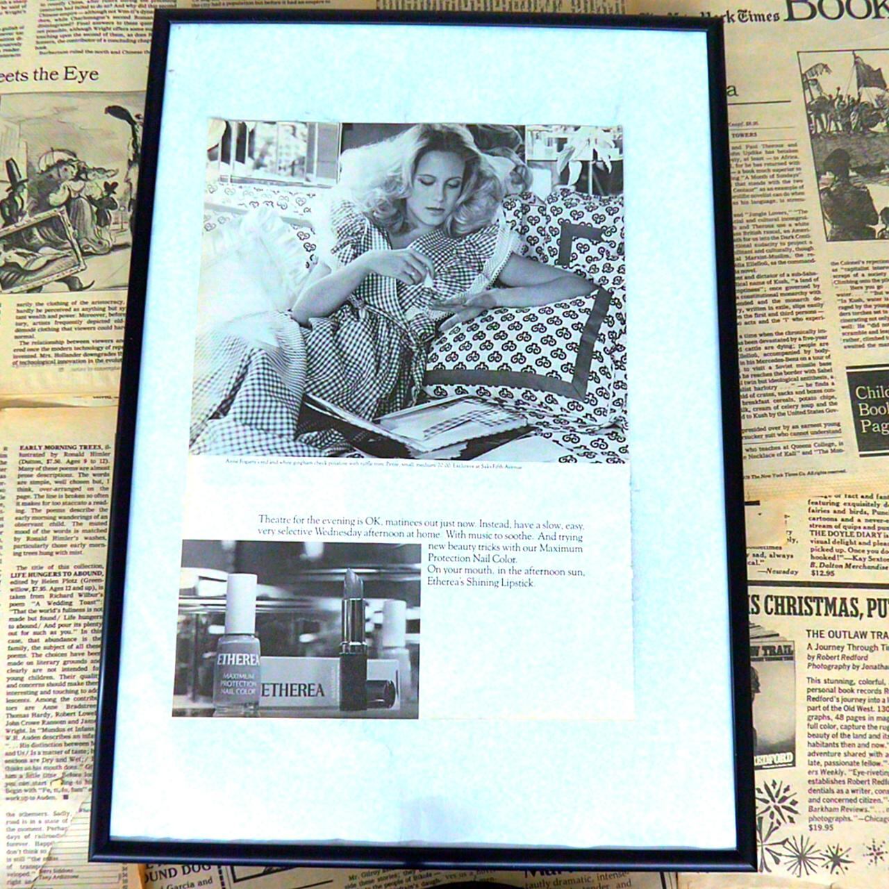 ETHEREA(エセリア)は、1970年代のアメリカにて展開されていたコスメティックブランドです。主にネイルカラーやリップスティックなど、女性の美しさを引き立てる化粧品をラインナップしていました。当時の広告では、家庭でのリラックスタイムや日常の一コマにフォーカスし、気取らない美しさや女性らしさを自然体で引き出すことをコンセプトにしていました。ETHEREAの製品は、ナチュラルでありながら洗練されたデザインと、時代背景にマッチした柔らかい色味が特徴で、忙しい日々の中でも自分らしく過ごしたい女性たちに支持されていました。