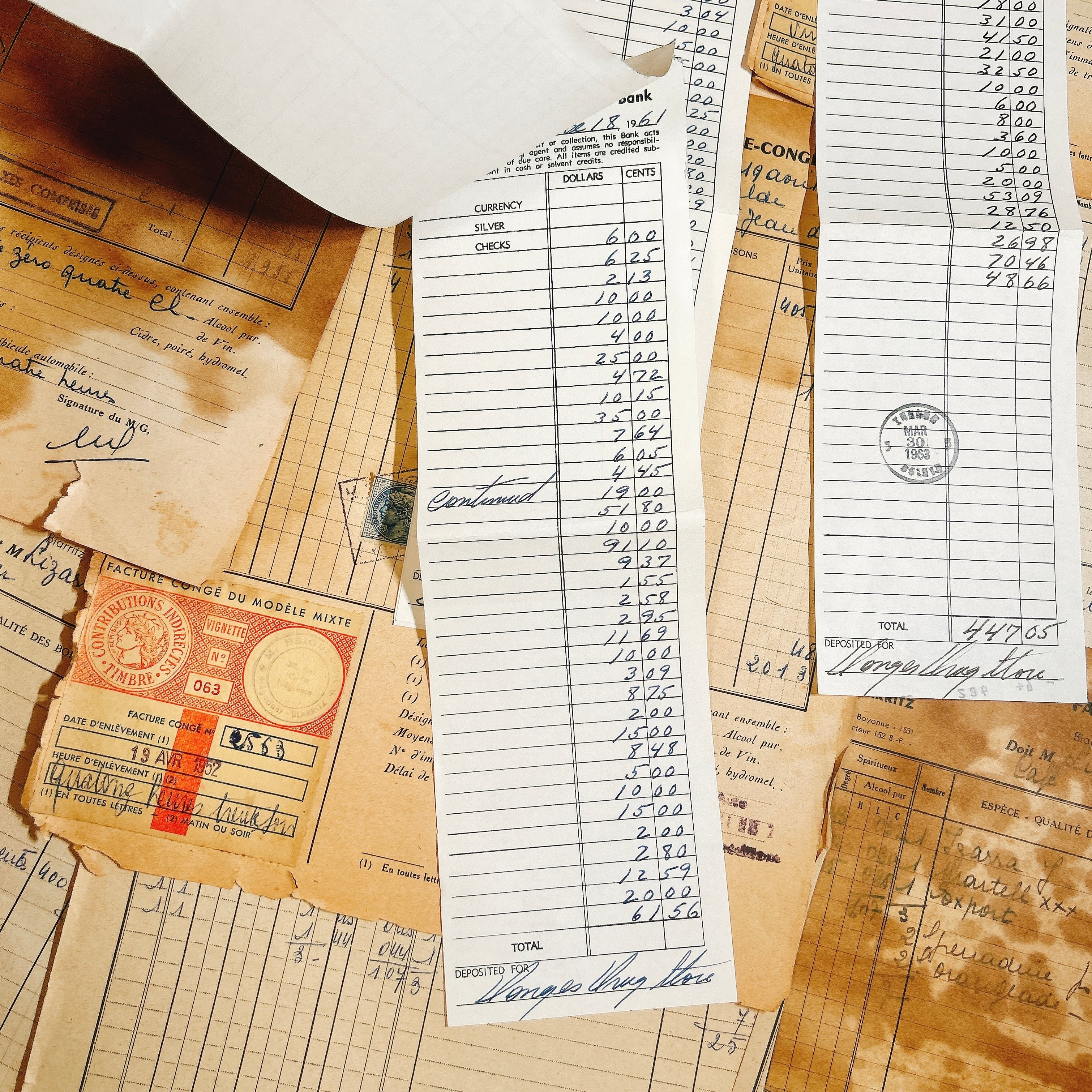 アメリカ・オハイオ州にある「The Citizens First National Bank」の入金伝票がまとまった20グラムセットです。画像に見られるように、1960年代のものを中心に使用済みの記録で、青インクで丁寧に数字や署名が書き込まれています。スタンプも押されており、当時の銀行業務の空気を感じられる資料的価値の高いアイテムです。