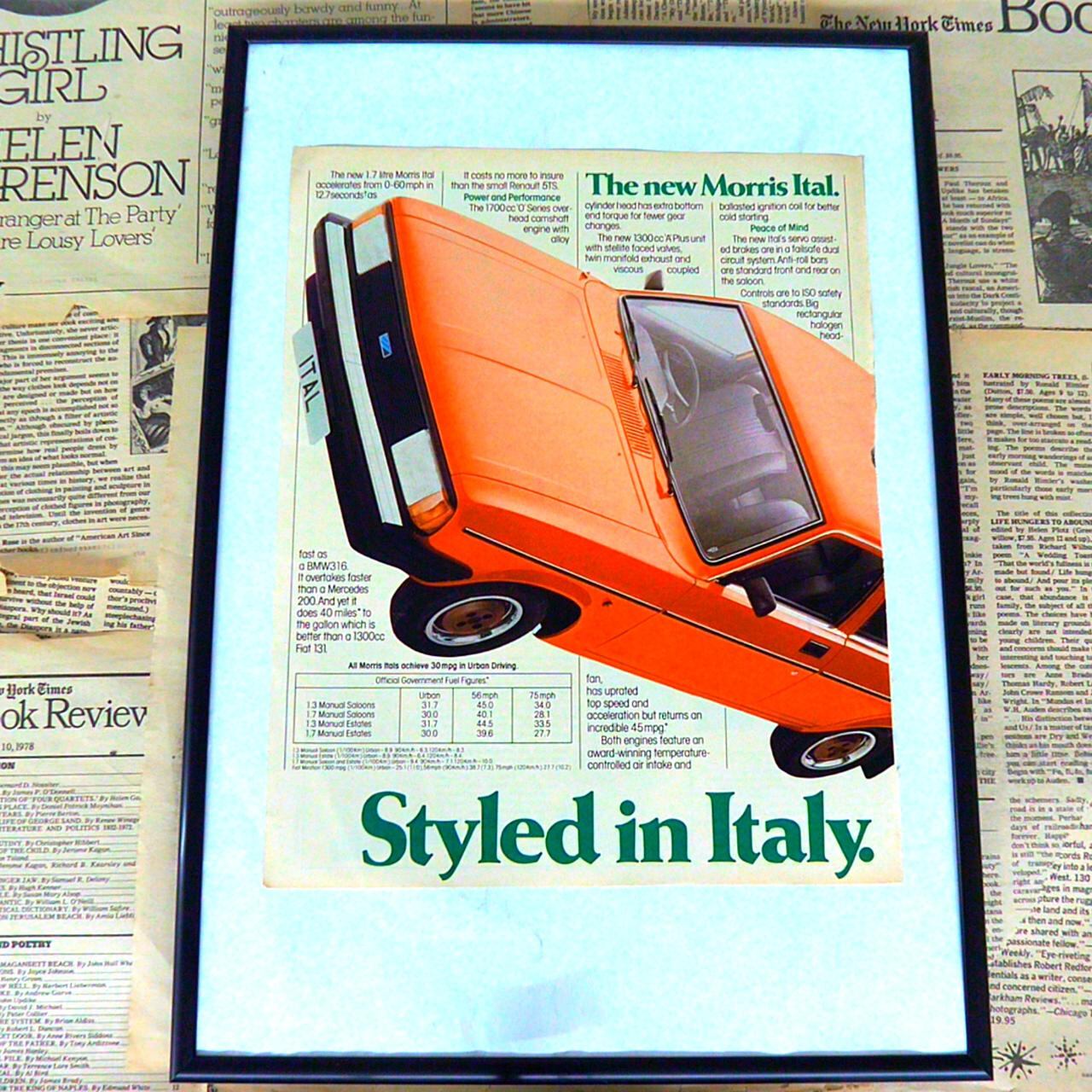 Morrisは、イギリスを代表する自動車ブランドの一つで、長い歴史を持つ大衆車メーカーです。モーリスの車は、1920年代から大衆の足として親しまれ、信頼性と親しみやすいデザインで人気を集めてきました。1970年代には、時代のニーズに合わせてコンパクトで経済的なモデルを展開し、欧州市場はもとより世界各地で愛用されていました。特に『イタル』のようなモデルは、イタリアンスタイルを取り入れた美しい外観と、現代的な実用性を兼ね備え、幅広い層に支持されました。モーリスは、質実剛健なものづくりと、時代を見据えたデザイン力を併せ持つ自動車メーカーとして知られています。
