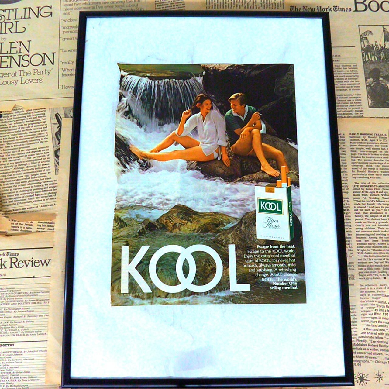 KOOLはアメリカ発のメンソールたばこブランドで、1933年に誕生しました。メンソールたばこのパイオニアとして知られており、その爽やかな味わいと冷涼感で多くの愛煙家から長年支持されています。ブランド名の“KOOL”は、清涼感やクールさを連想させ、自然やリラックスしたライフスタイルをイメージした広告展開が特徴です。特に1970年代には、若々しさやアウトドアを強調した広告ビジュアルが多数制作され、当時の潮流を象徴する存在となりました。