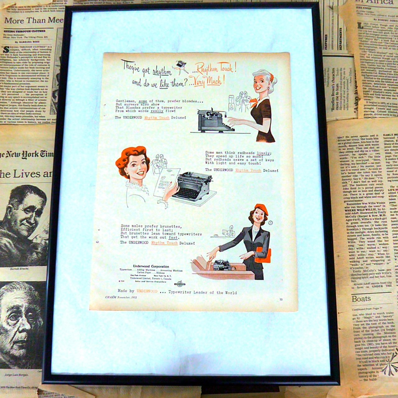 Underwoodの広告切り抜きです。1950年代のNYTから切り抜いたものとなります。