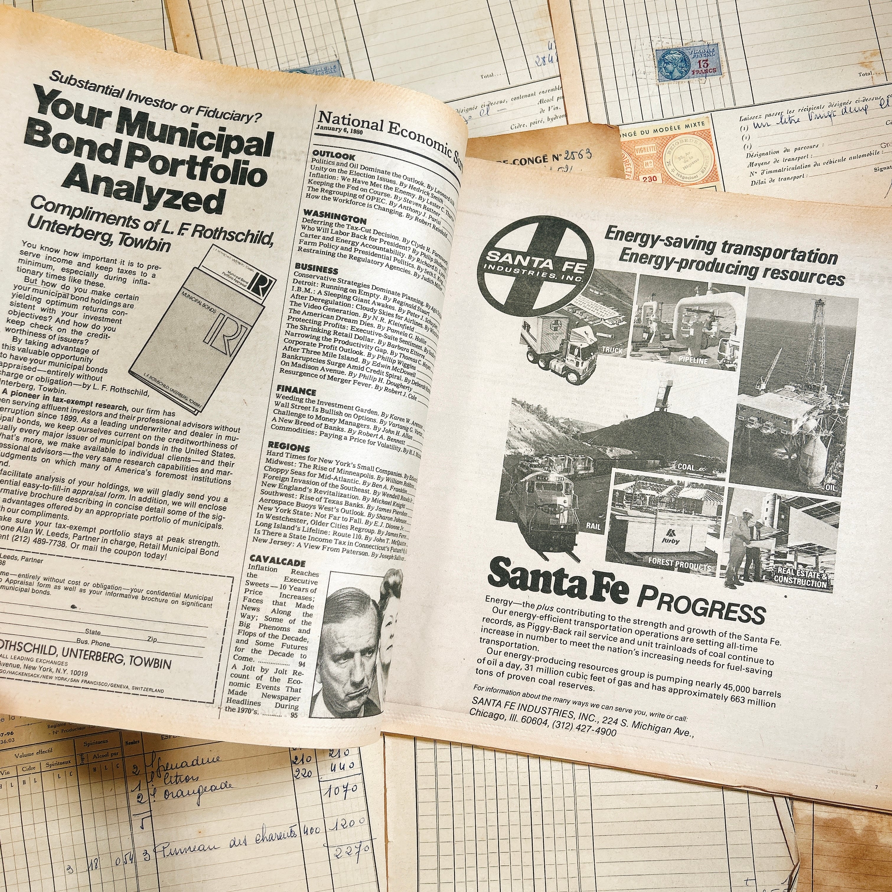 こちらは1980年代『The New York Times Book Review』のヴィンテージ新聞1冊です。ニューヨーク・タイムズが毎週日曜日に発行しているブックレビュー専門の別冊紙で、文学やノンフィクションを中心にした評論や特集が豊富に掲載されています。1980年当時の知的文化を色濃く反映した内容が紙面を彩ります。