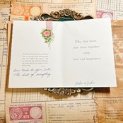 カードの内側には聖書の一節「And Ruth said, Intreat me not to leave thee…(ルツ記1章16節)」が印刷され、愛と誓いの深さを感じさせます。右側には「May God bless your lives together with love and happiness.(神の祝福があなたたちの人生に愛と幸福をもたらしますように)」という温かなメッセージが添えられ、結婚を迎える二人にふさわしい祈りの言葉が綴られています。