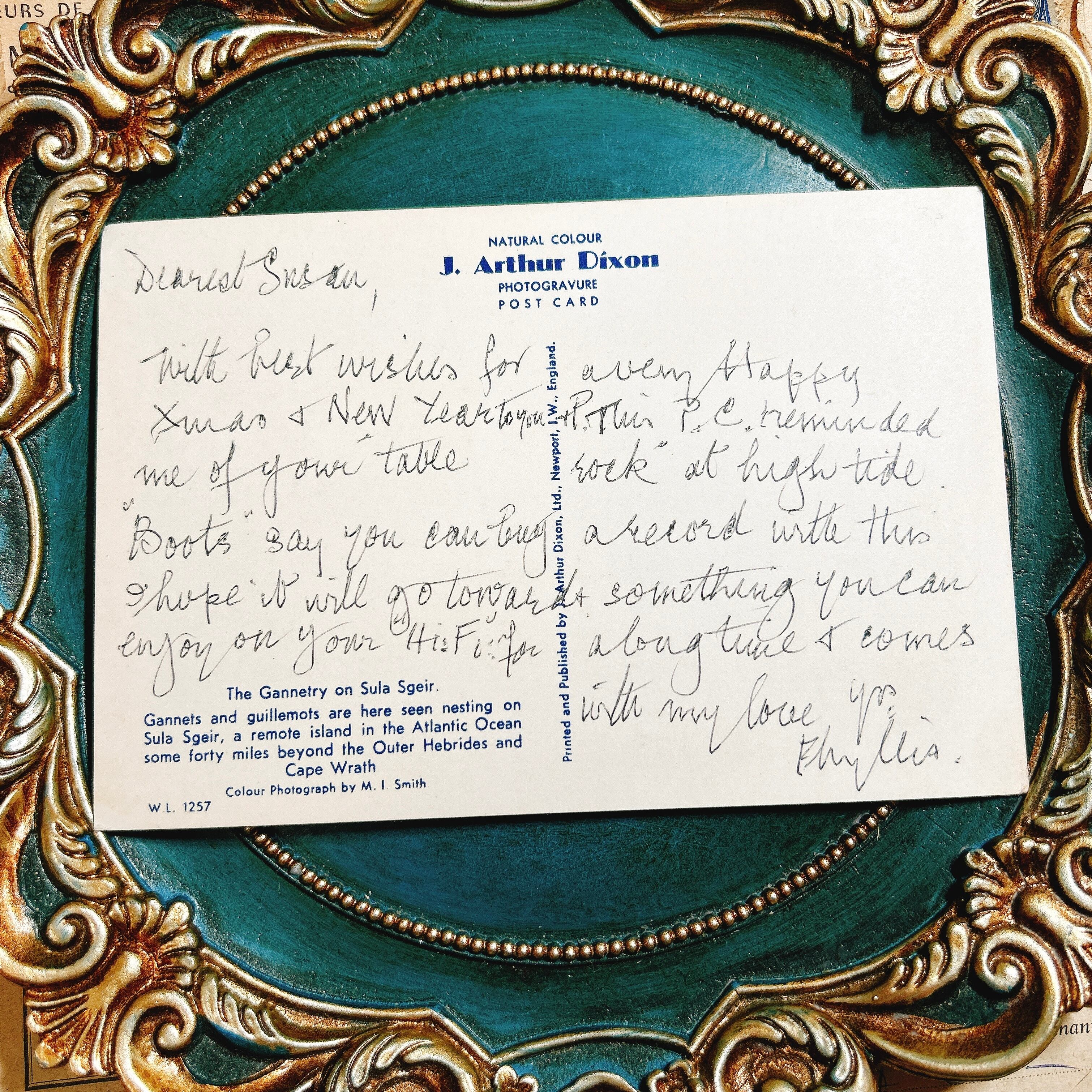 発行はイギリスの老舗絵葉書メーカー「J. Arthur Dixon」。高品質なフォトグラビア印刷で知られ、1950〜60年代の観光絵葉書として多くの旅行者に愛されました。裏面には手書きのメッセージが残されており、送り主の温かな筆跡が時を超えて読み手に語りかけます。その筆致からは、クリスマスや新年の挨拶、遠方に暮らす友人への思いやりが感じられます。