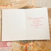カードを開くと、上品な書体で「Wishing you the gladness of Christmas which is Hope, the spirit of Christmas which is Peace, the essence of Christmas which is Love(クリスマスの喜びは希望に、精神は平和に、本質は愛に)」というメッセージが印字されています。手書きの余白もたっぷりあるため、大切な人への一言を添えるのにもぴったりです。