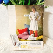 Verneyは、アメリカの老舗テキスタイルメーカーで、特に高品質な合成繊維を用いたファブリック(布地)で知られています。20世紀中盤のアメリカにおいて、Verneyは斬新な素材と豊かな色使いで家庭やファッション業界に新たな風をもたらし、軽やかで耐久性の高い生地は日常生活の多様なシーンで重宝されました。広告に見られるように、Verneyのファブリックは家庭でのリラックスしたひとときや若々しいライフスタイルを象徴するアイコンとして親しまれ、多くの消費者に愛されてきました。