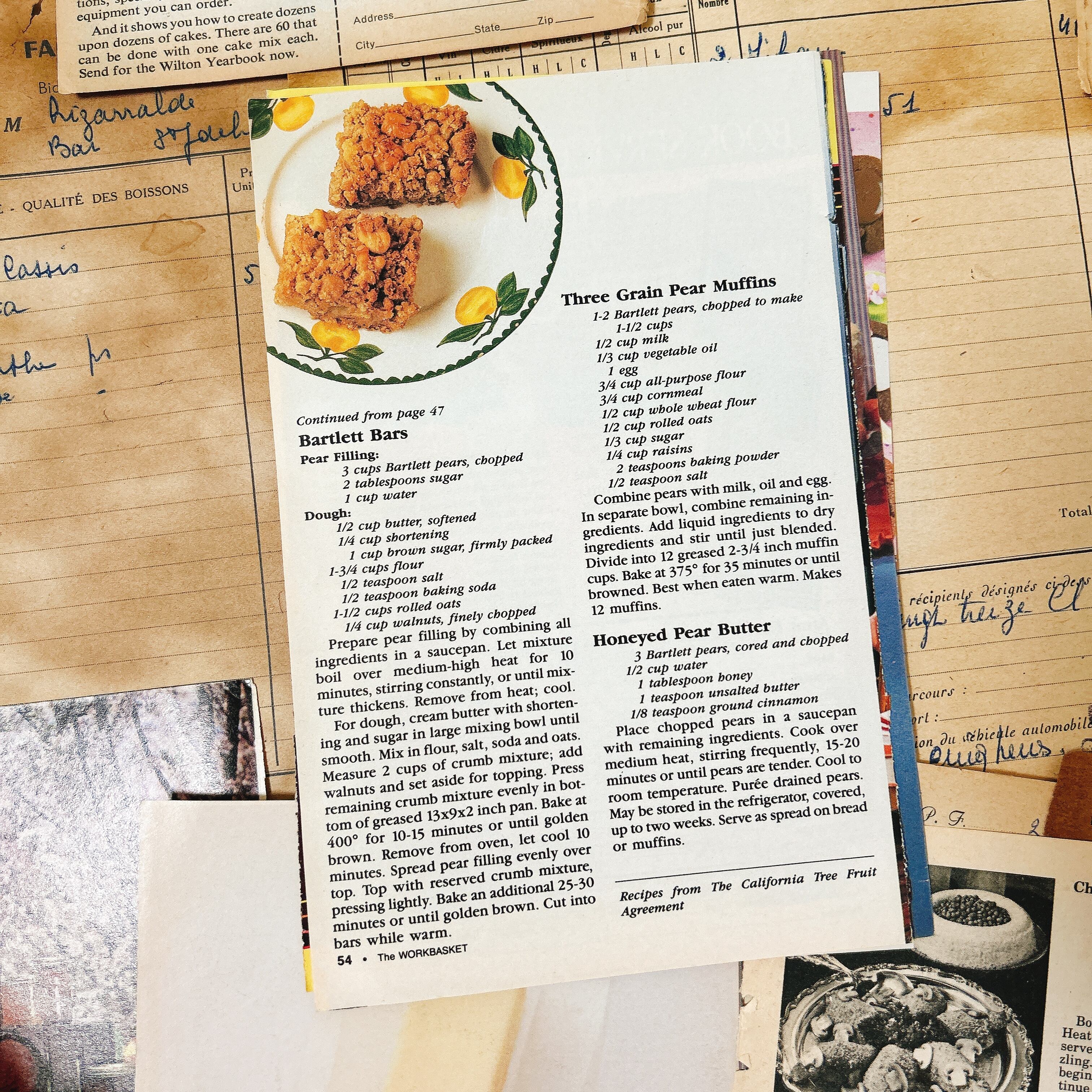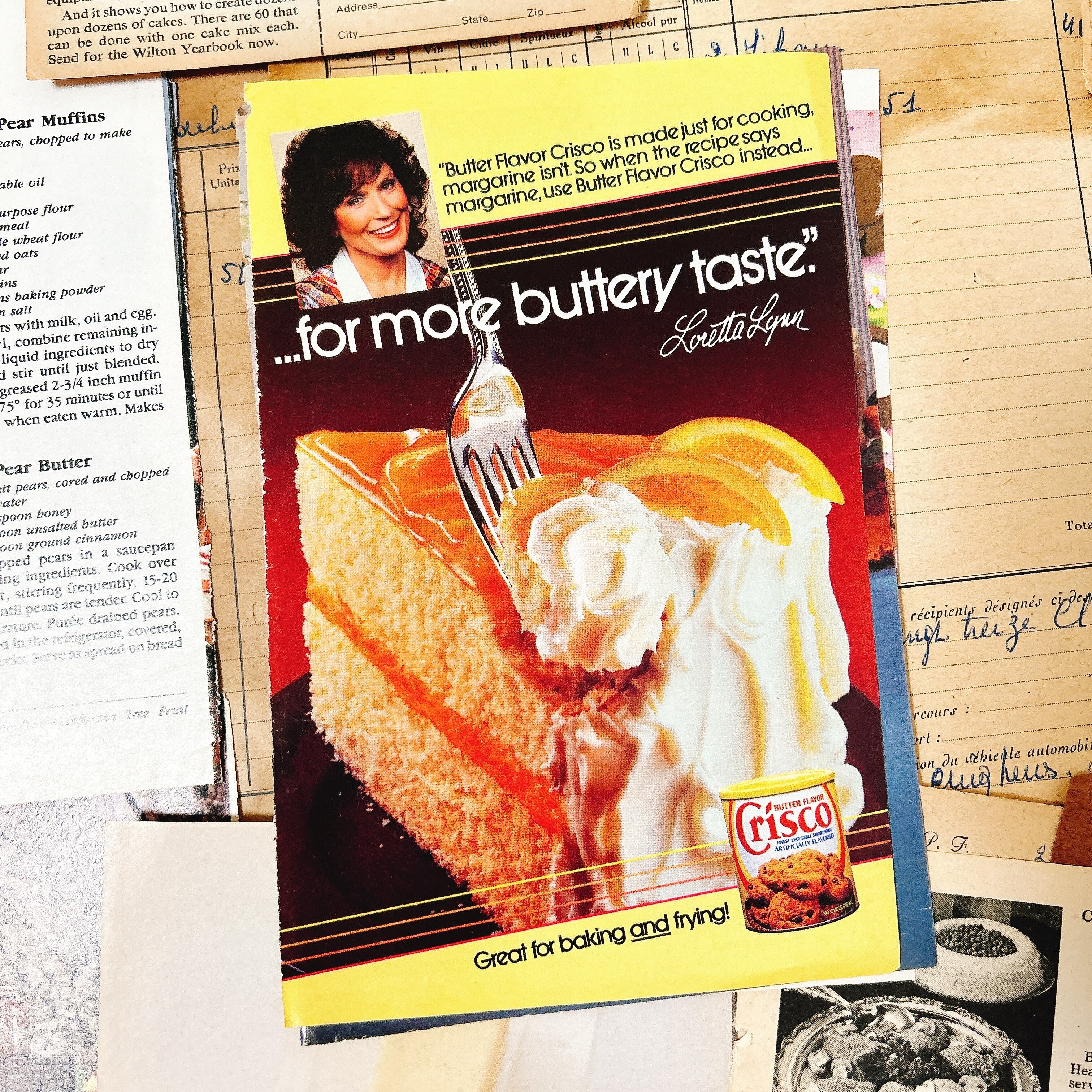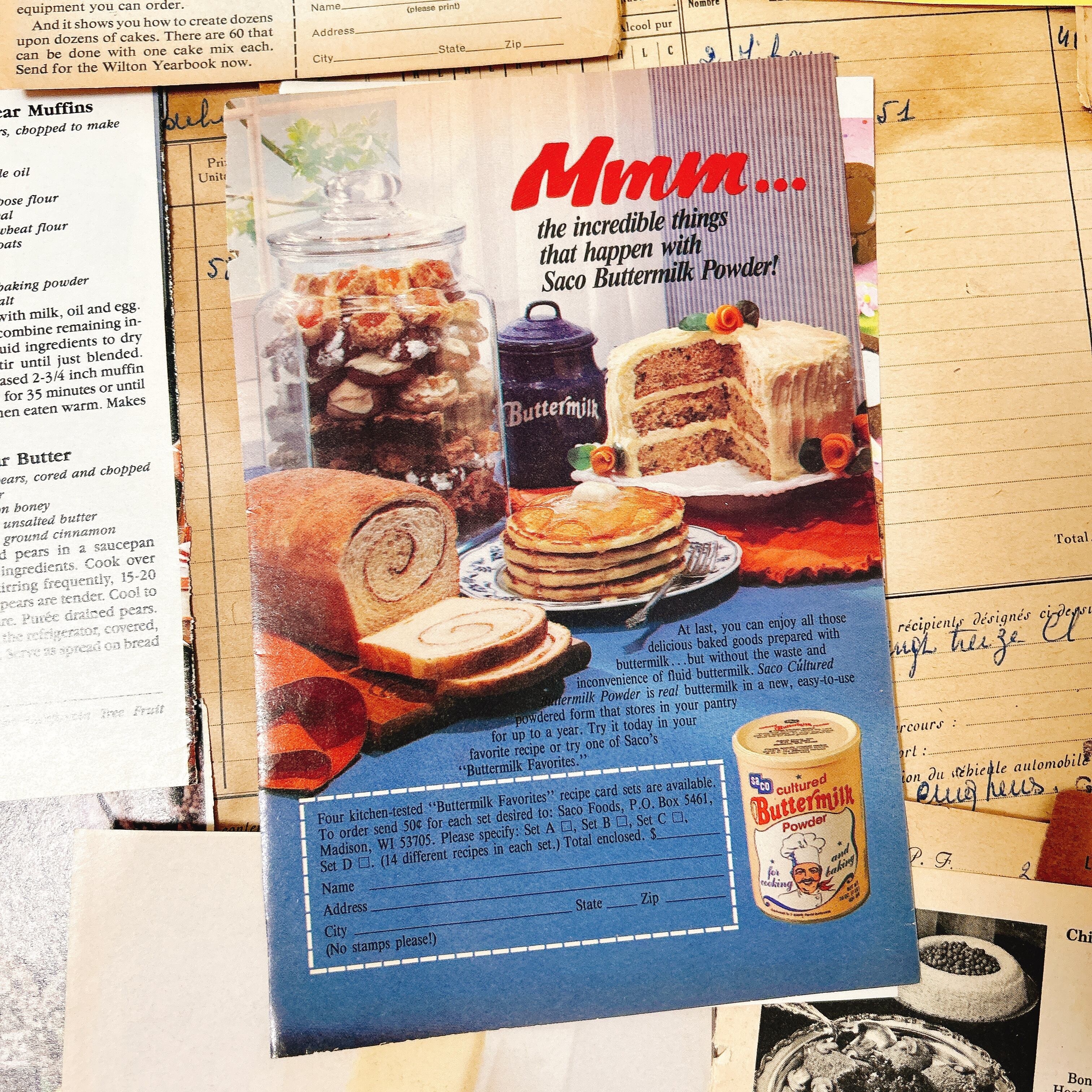 1960〜70年代アメリカの雑誌から切り離された、フード系ヴィンテージペーパー10枚セットです。色鮮やかな印刷で、バターミルクパウダーやCrisco、キャンディー広告、ケーキやサンドイッチのレシピページなど、当時の食卓を彩ったレトロなデザインが揃います。花のようなカップケーキやハロウィンのパンプキンケーキなど、見ているだけで楽しいモチーフばかりです。紙質は軽く、経年による焼けやインクのにじみも味わいとして残っています。チョキチョキ切ってコラージュ素材としても、額装して飾っても素敵です。サイズは20.2×13.5cm。どのページにも50年代〜70年代のアメリカらしい陽気な色使いと、当時の暮らしの温もりが感じられる一品です。
