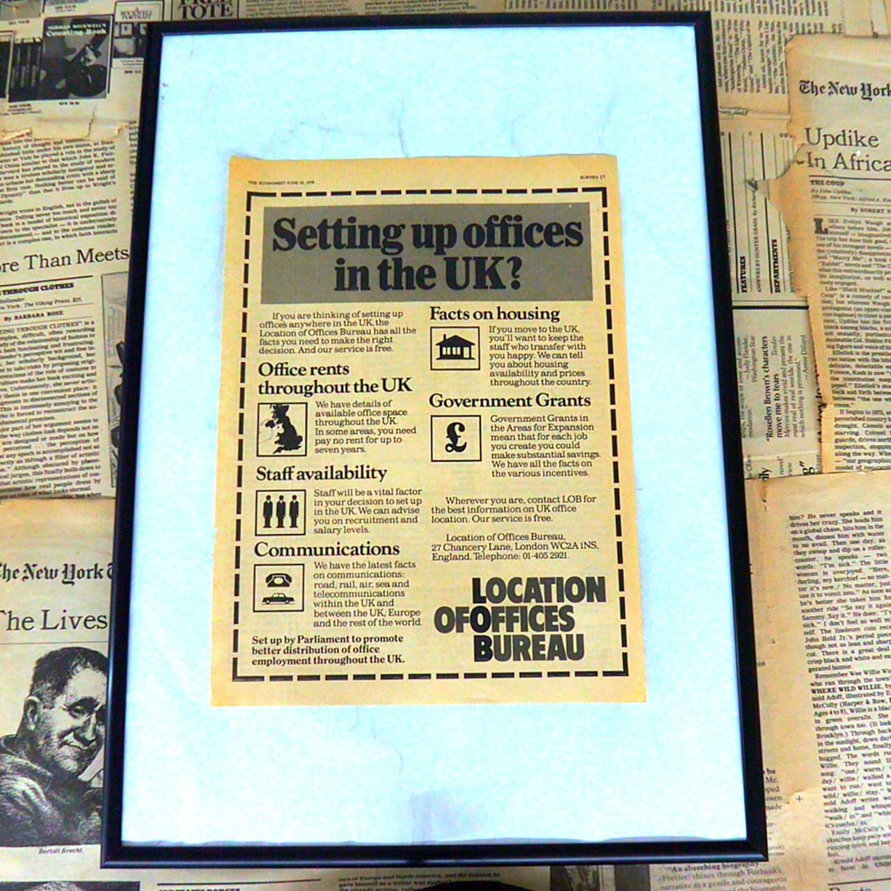Location of Offices Bureauの広告切り抜きです。1970年代のNYTから切り抜いたものとなります。