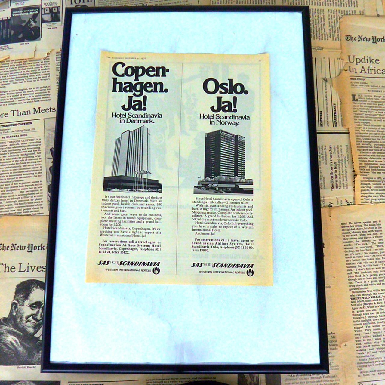 SAS Hotel Scandinaviaの広告切り抜きです。1970年代のNYTから切り抜いたものとなります。