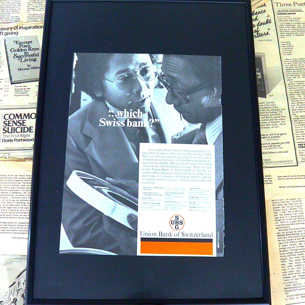 Union Bank of Switzerlandの広告切り抜きです。1970年代のNYTから切り抜いたものとなります。