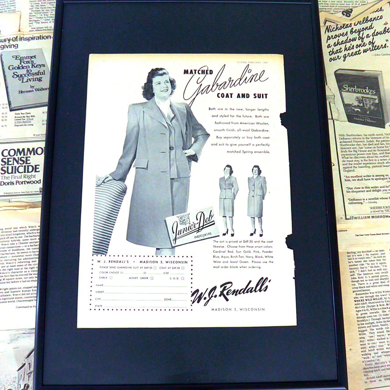 W.J. Rendallはウィスコンシン州マディソンに拠点を置くアパレル企業で、特に婦人服の分野で知られています。優れた品質のアメリカ製ウール素材を用いたスーツやコートを提供し、時代の流行に合わせたスタイルを提案しています。顧客のニーズに応じて、バラエティ豊かなカラーとサイズ展開を持ち、郵送による注文にも対応しています。伝統と実用性を兼ね備えたデザインで、幅広い年齢層の女性に親しまれるブランドです。