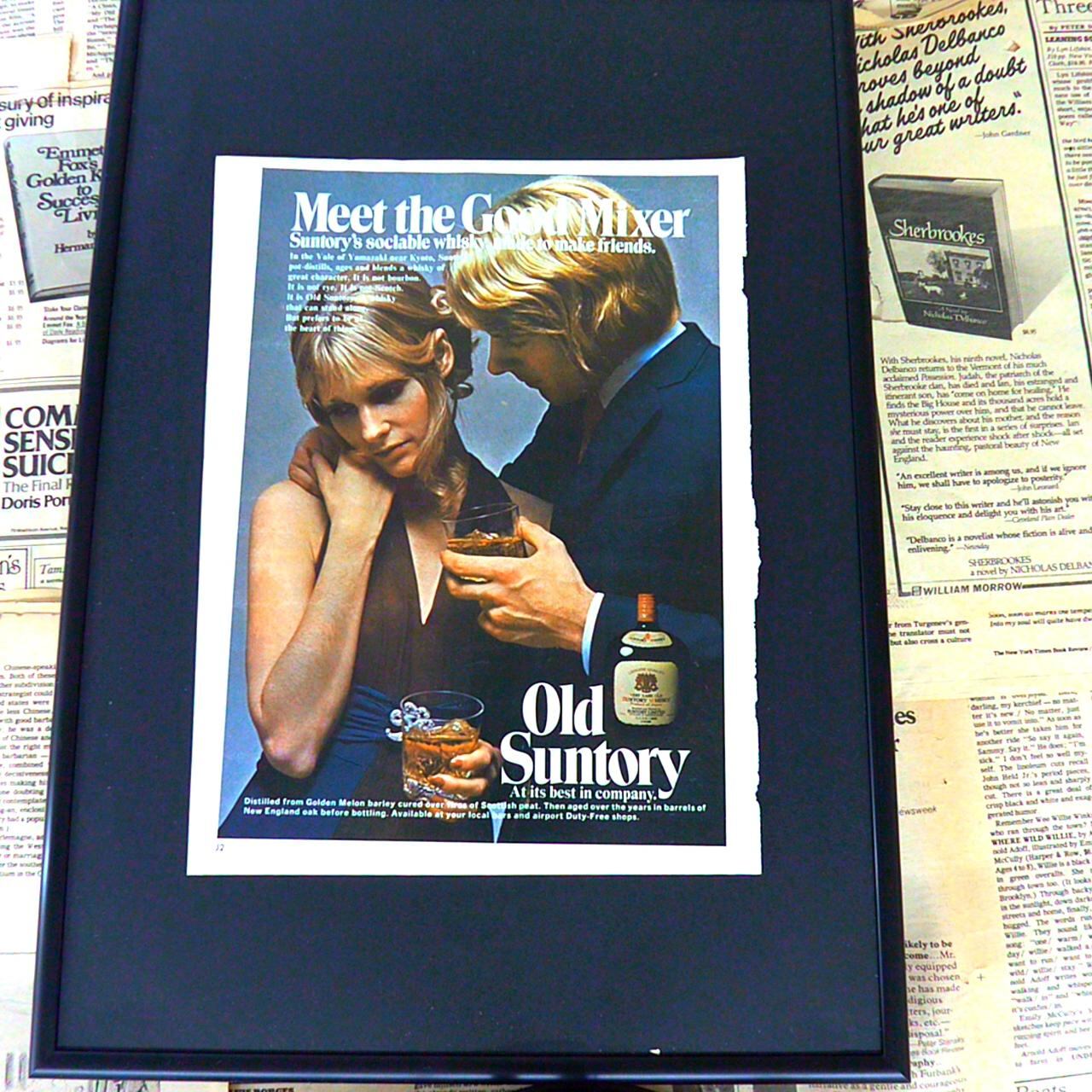 Suntory(サントリー)は、日本を代表する飲料・酒類メーカーで、創業以来ウイスキーをはじめとする多彩なアルコール飲料を世界に届けてきました。特にウイスキー分野では革新的な技術と伝統的な製法を融合させた質の高い製品づくりに定評があり、国内外のウイスキー愛好家から高い評価を受けています。長年にわたり豊かな香りとまろやかな味わいを追求し続けており、海外展開も積極的に行っています。広告にあるように、Suntoryのウイスキーは社交的な場や大切な人とのひとときをより豊かに彩る存在として、1970年代にも多くの人々に親しまれていました。