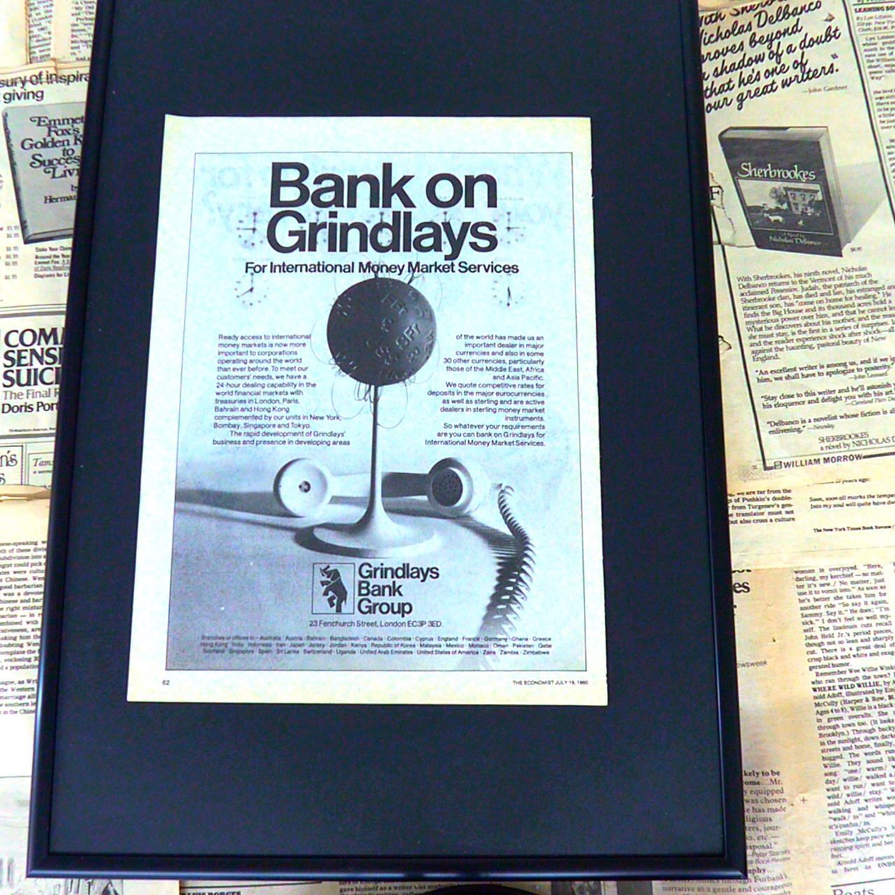 Grindlays Bank Groupの広告切り抜きです。1980年代のNYTから切り抜いたものとなります。