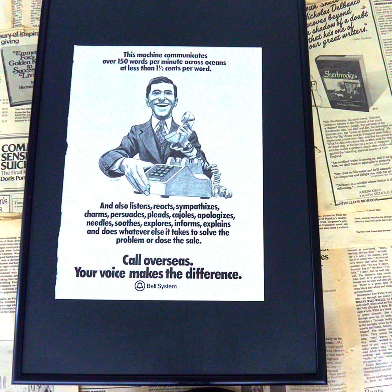 Bell Systemの広告切り抜きです。1970年代のNYTから切り抜いたものとなります。
