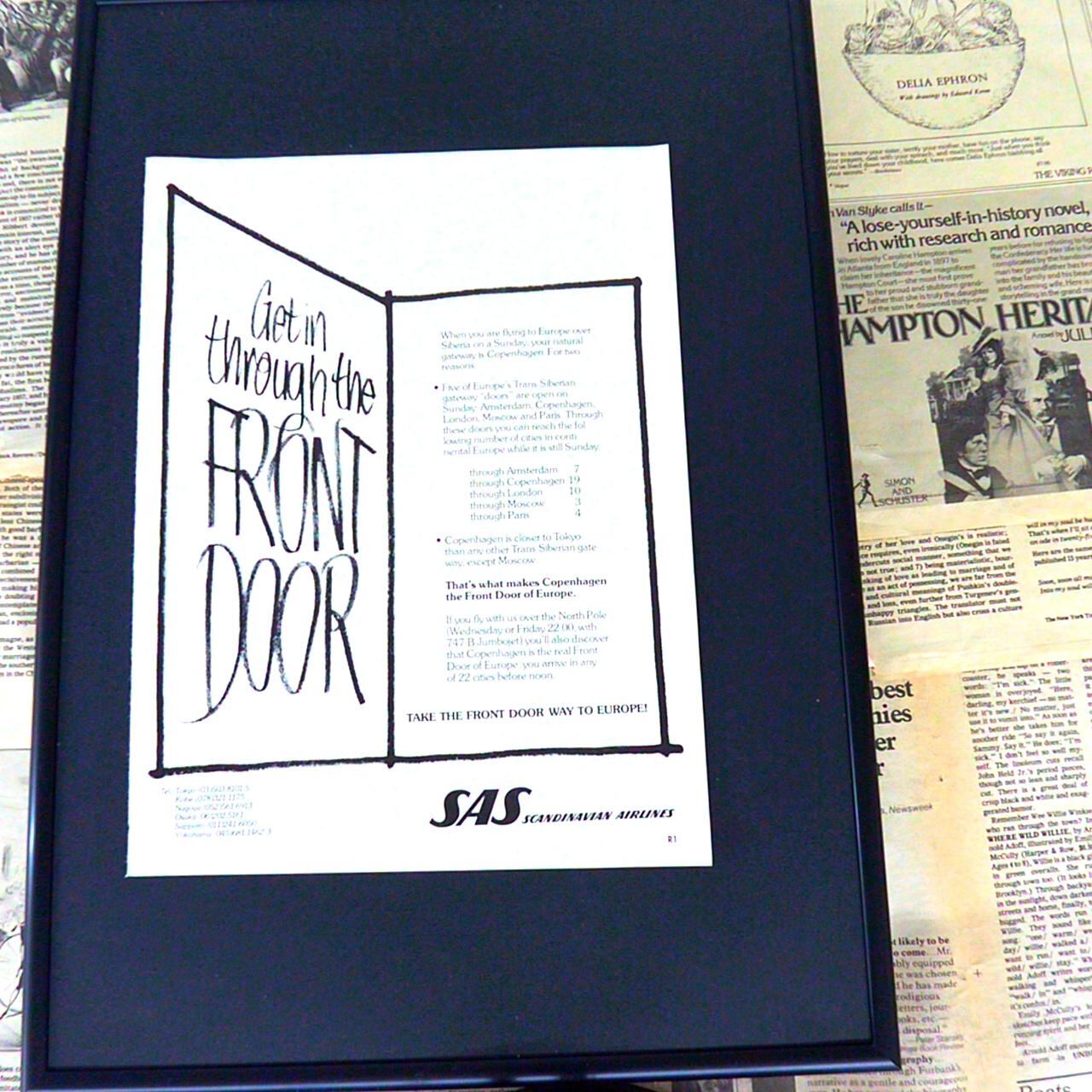 Scandinavian Airlinesの広告切り抜きです。1970年代のNYTから切り抜いたものとなります。