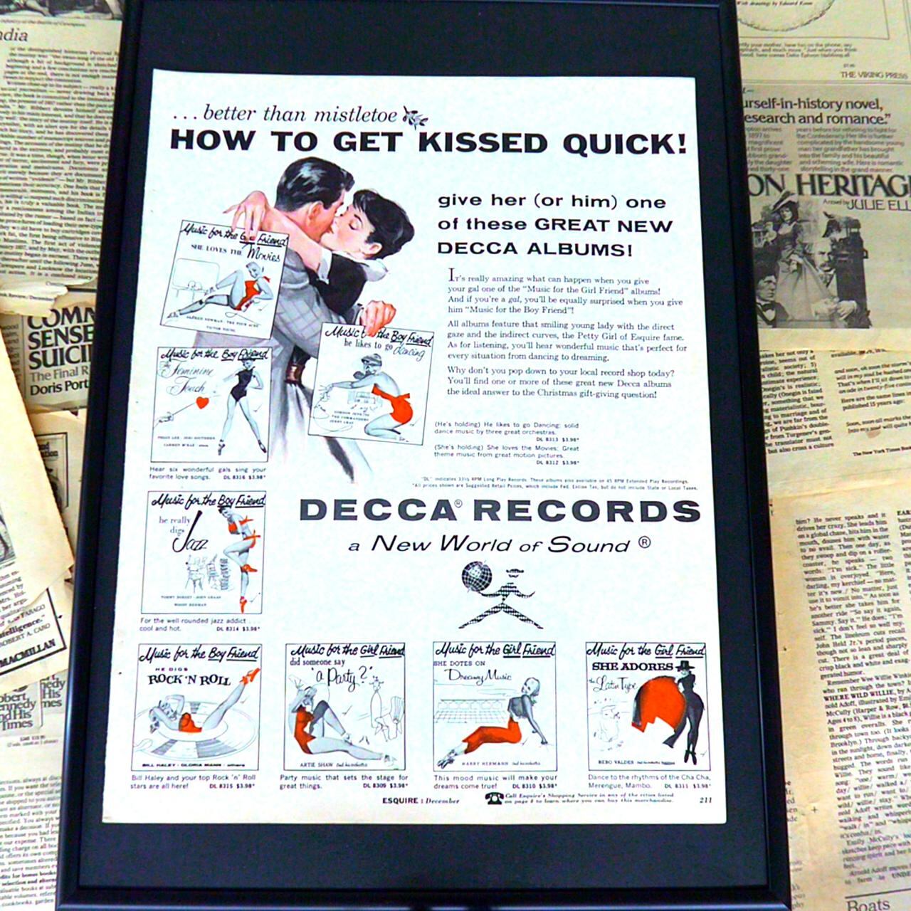 DECCA RECORDSは、1929年に設立されたイギリスとアメリカを拠点とする大手音楽レーベルです。クラシックからポップス、ジャズ、ロックンロールまで幅広いジャンルの音楽を手がけており、20世紀を代表するアーティストや名盤を数多く世に送り出してきました。革新的な録音技術と多彩なラインナップで知られ、音楽ファンだけでなく業界関係者にも高い評価を受けています。広告当時は、クリスマスギフトとして人気の高いアルバムシリーズを展開し、「A New World of Sound」というキャッチフレーズのもと、誰もが音楽を楽しめるライフスタイルを提案していました。